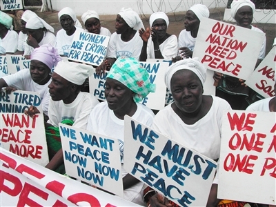 Bất chấp nắng, mưa và tiếng nổ rền vang của súng ống và bom đạn, những người phụ nữ Liberia đã cầu nguyện và yêu cầu chấm dứt các cuộc xung đột giữa cựu Tổng thống Charles Taylor và lực lượng nổi dậy.