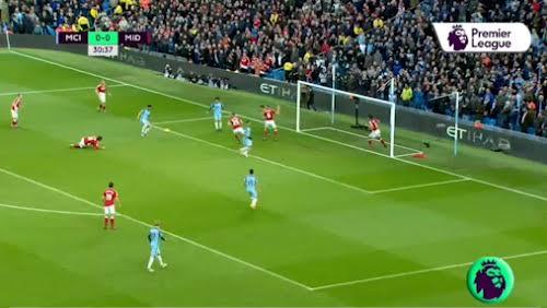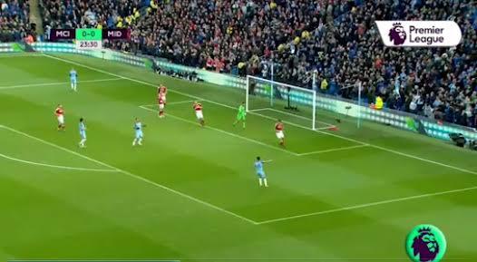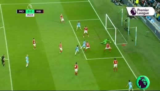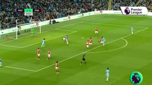 Middlesbrough dàn thế trận phòng ngự nhiều tầng, không cho đối thủ đập nhả ở trung lộ. Vì thế, Man City đang cố gắng khoét biên rồi tạt vào trong.
