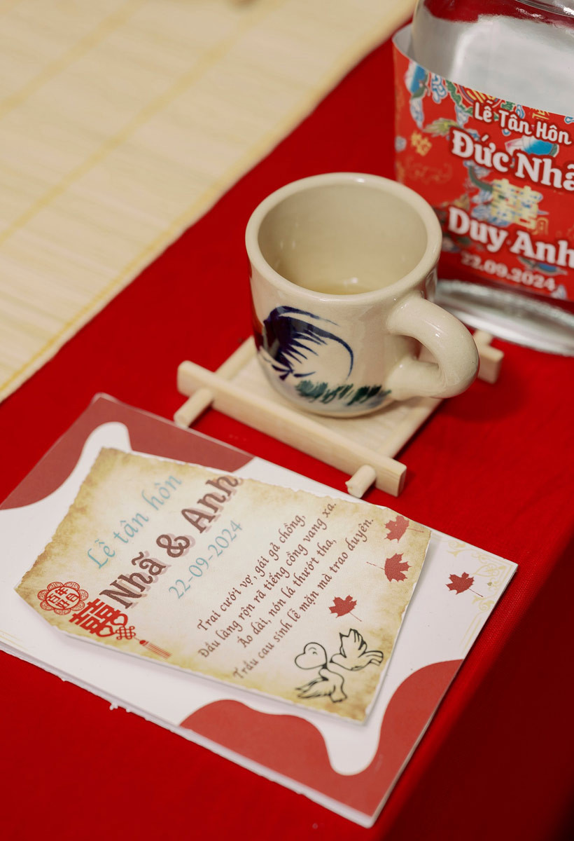 Sau đó, Đức Nhã giao cho một đơn vị trang trí tiệc cưới, nhờ họ sắp xếp, bài trí một cách phù hợp. Bản thân anh cũng trực tiếp tham gia quá trình này.