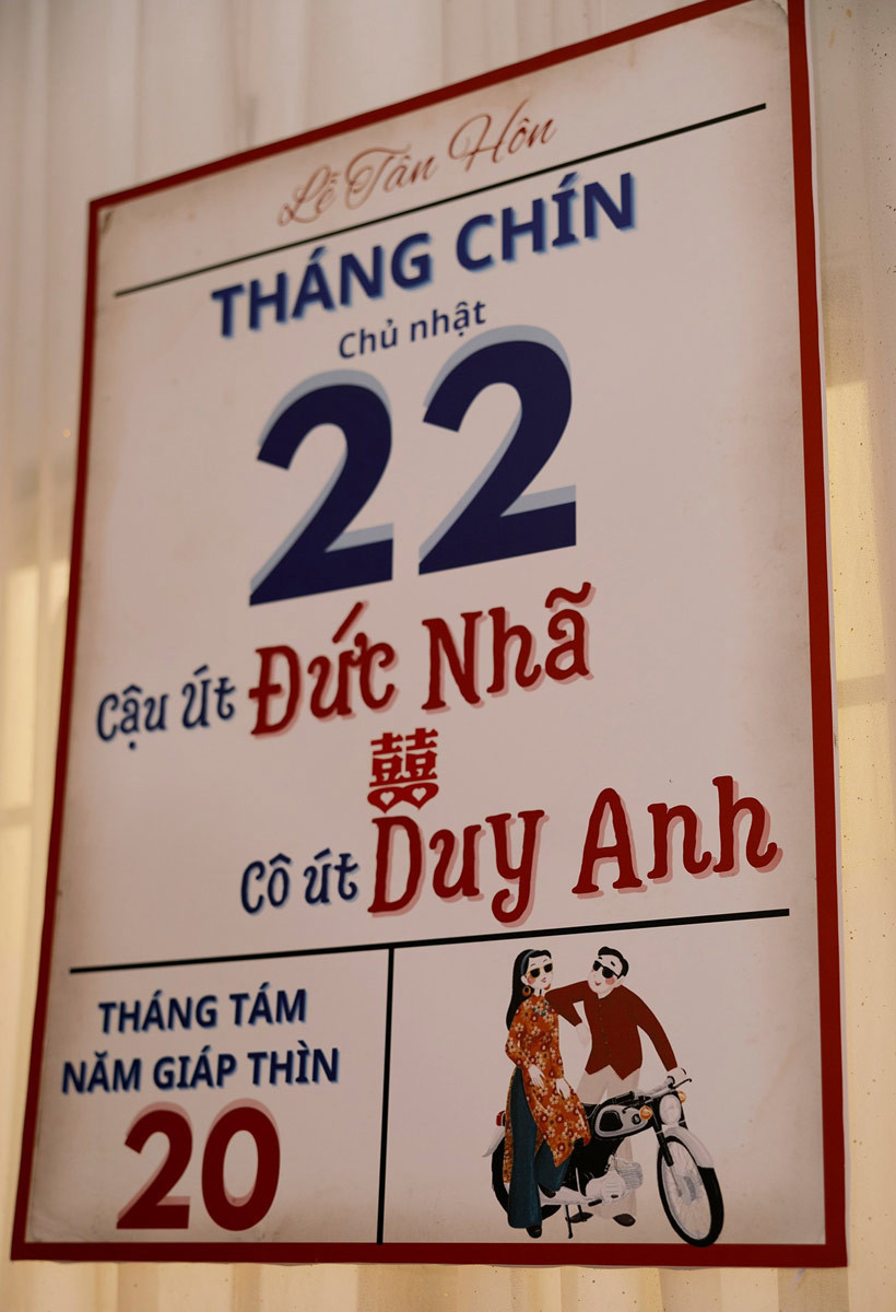 Với mong muốn có một đám cưới ấm áp, sum vầy và gắn kết, Đức Nhã quyết định trang trí không gian cưới theo phong cách thời xưa. Anh không hề tiết lộ với cô dâu và bên nhà gái ý tưởng này mà âm thầm tự chuẩn bị.