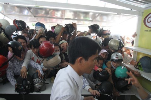 >> Đà Nẵng: Chen lấn hỗn loạn đổi mũ bảo hiểm