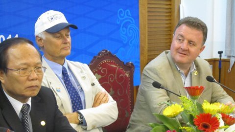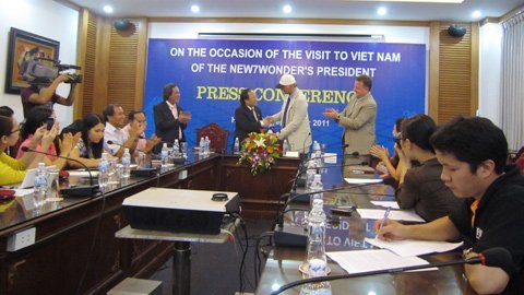 Cuộc họp báo của lãnh đạo tổ chức New7Wonders thu hút sự quan tâm của nhiều cơ quan báo chí.