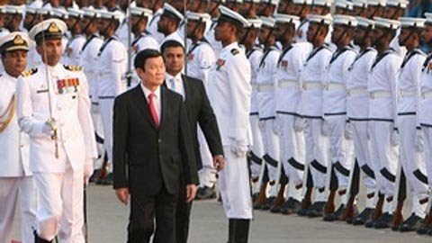 | Chủ tịch nước Trương Tấn Sang duyệt đội danh dự quân đội Sri Lanka. Ảnh: TTXVN |