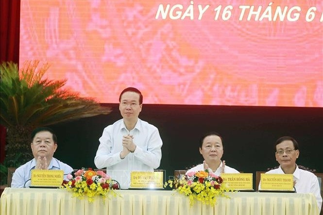 Chủ tịch nước Võ Văn Thưởng với các đại biểu. (Ảnh: Thống Nhất/TTXVN)