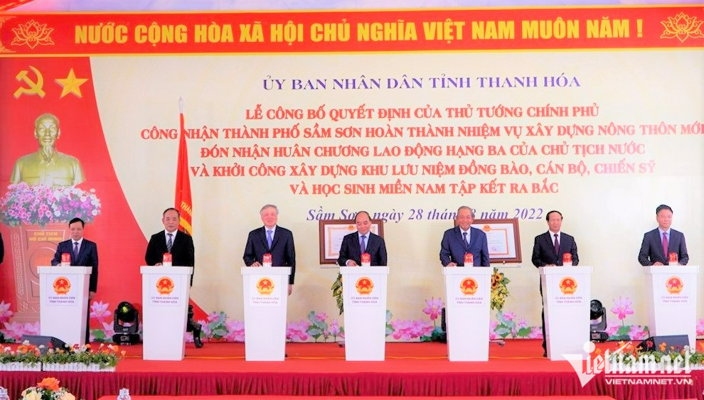 Sáng 28/8, tại TP Sầm Sơn, UBND tỉnh Thanh Hóa đã tổ chức Lễ công bố quyết định của Thủ tướng Chính phủ công nhận TP Sầm Sơn hoàn thành nhiệm vụ xây dựng nông thôn mới (NTM) và khởi công Dự án Khu lưu niệm đồng bào, cán bộ, chiến sĩ, học sinh miền Nam tập kết ra Bắc.