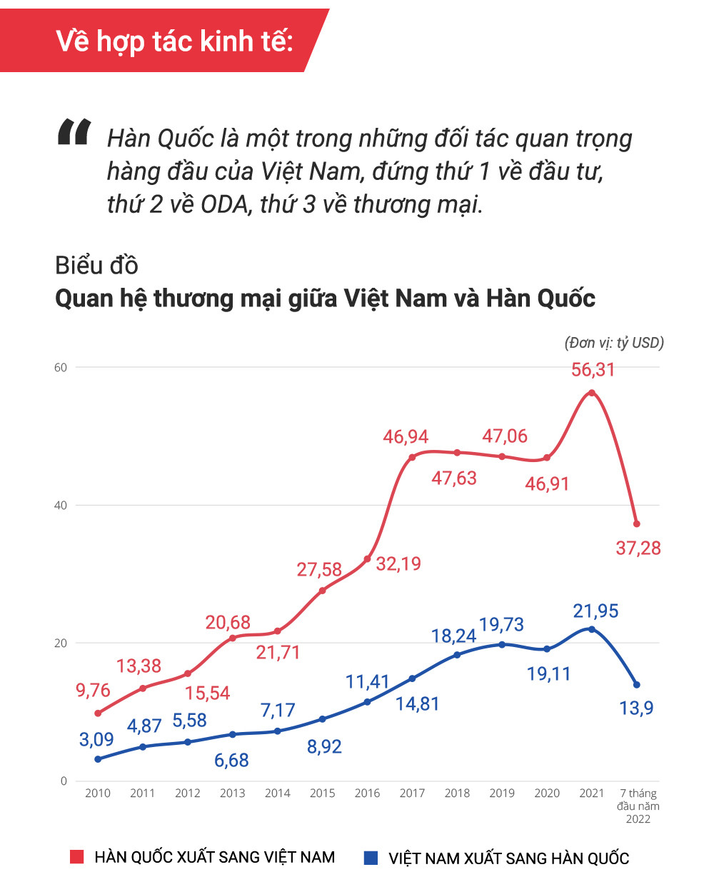 Còn nhìn từ phía Việt Nam, việc xây dựng và làm sâu sắc quan hệ hợp tác với Hàn Quốc phù hợp với đường lối đối ngoại “đa dạng hóa và đa phương hóa quan hệ đối ngoại” nêu trong Văn kiện Đại hội XIII.
