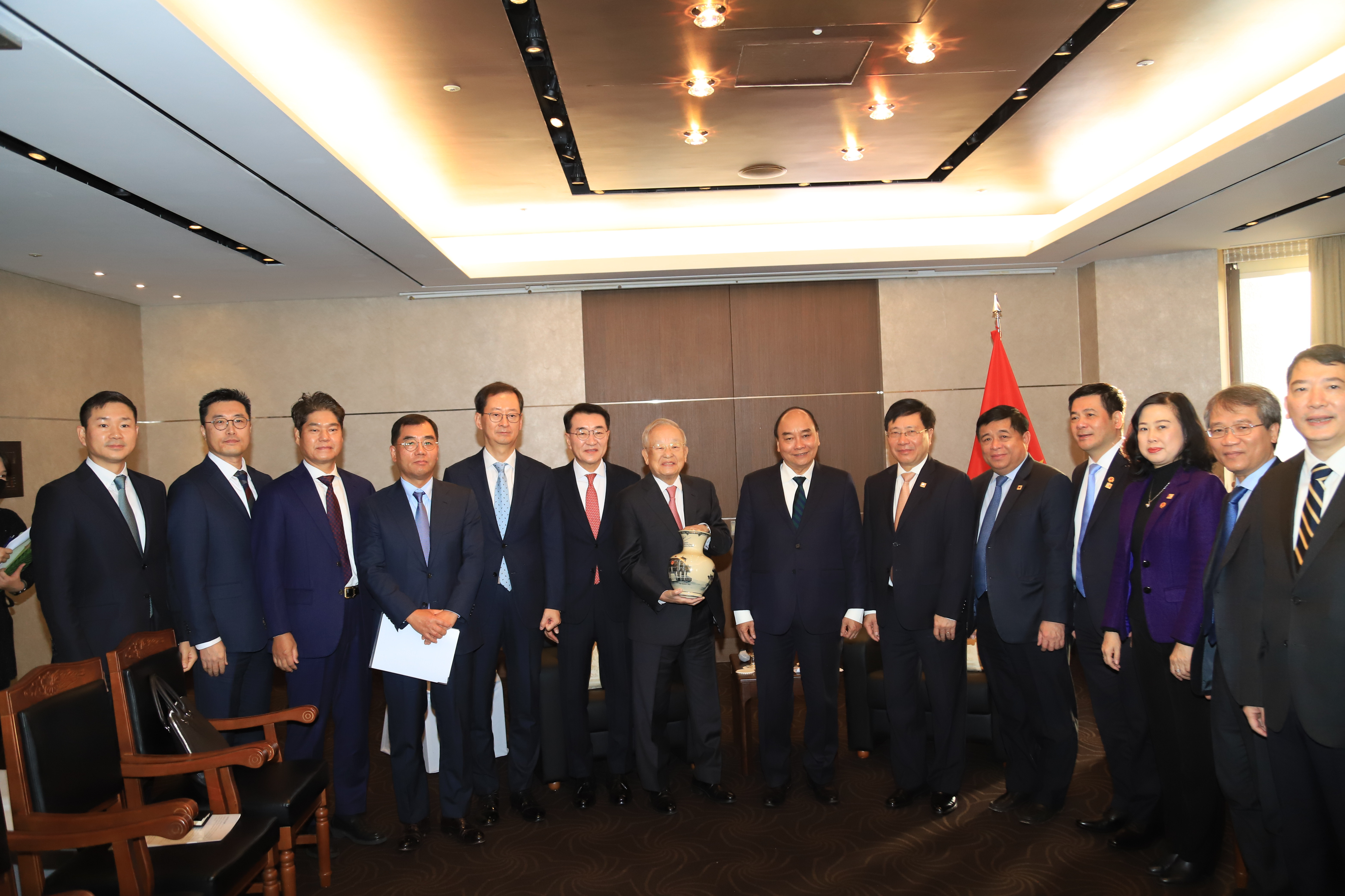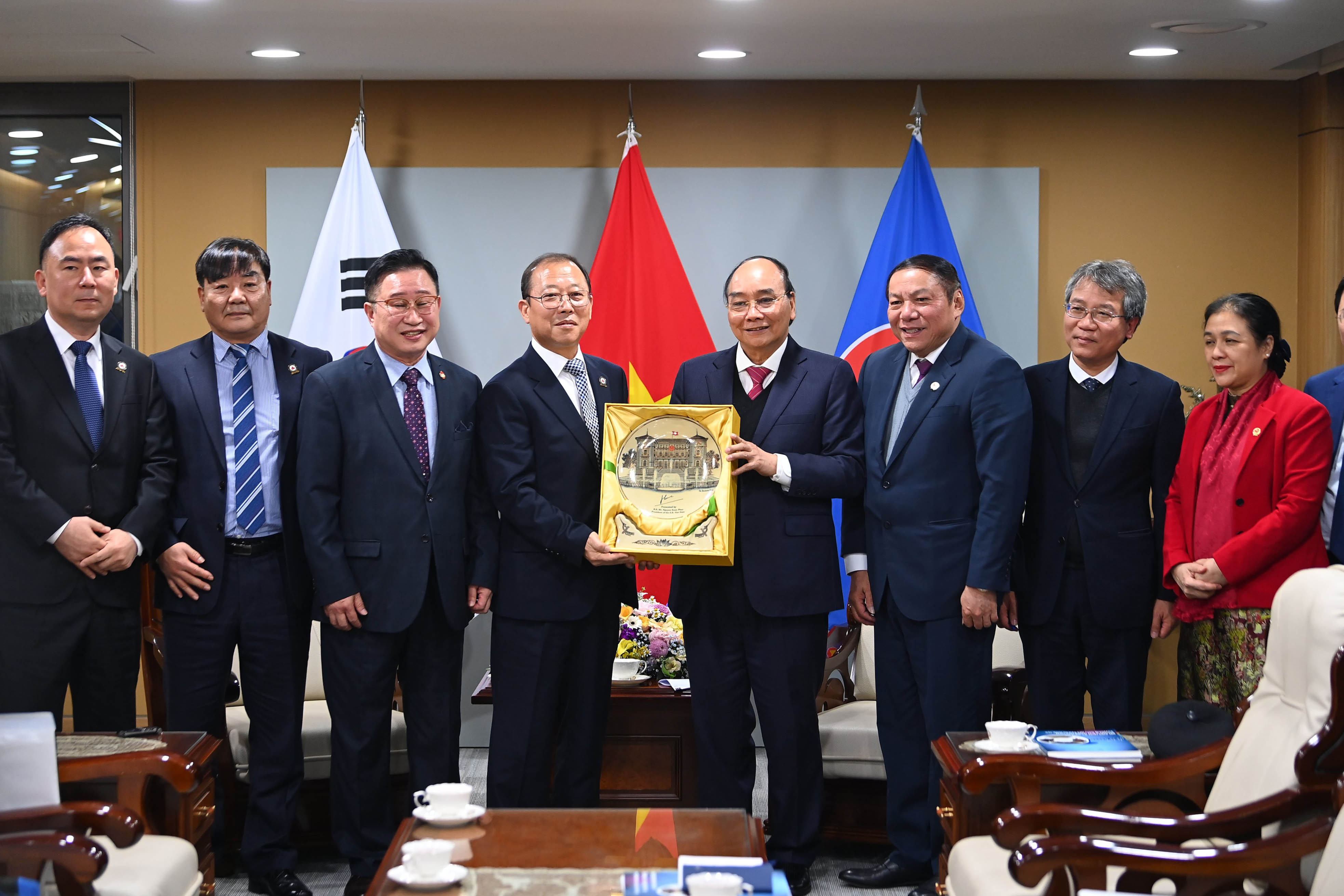 Tại Hàn Quốc, Chủ tịch nước Nguyễn Xuân Phúc và Phó Thủ tướng kiêm Bộ trưởng Kế hoạch và Tài chính Hàn Quốc Choo Kyung-ho đã dự và phát biểu tại Diễn đàn doanh nghiệp Việt Nam-Hàn Quốc.