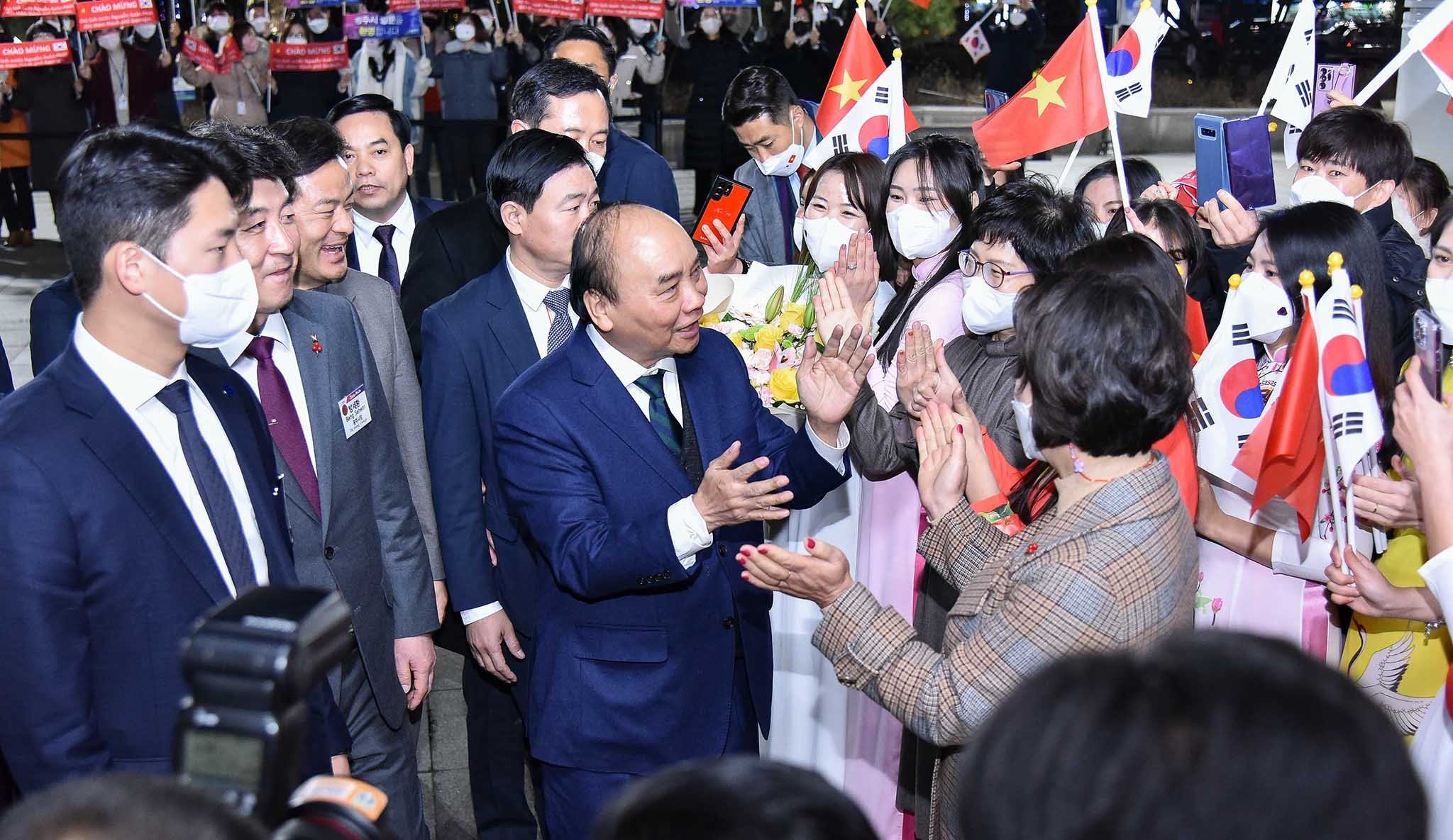 Ngay khi đặt chân đến thủ đô Seoul bắt đầu chuyến thăm cấp nhà nước tại Hàn Quốc, Chủ tịch nước Nguyễn Xuân Phúc đã gặp gỡ, thăm hỏi và nói chuyện thân tình với cán bộ, nhân viên Đại sứ quán Việt Nam và cộng đồng người Việt Nam tại Hàn Quốc.