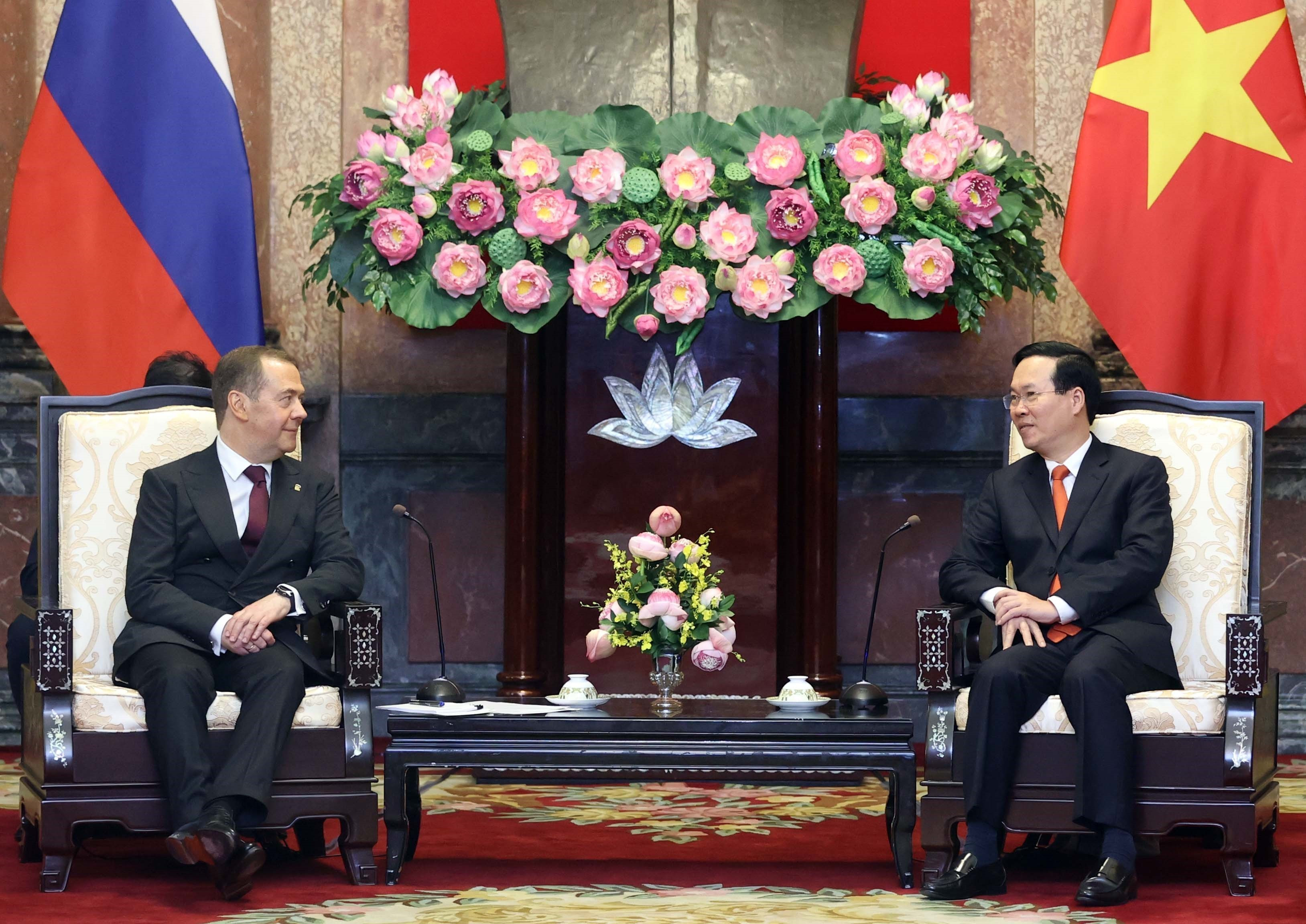 Chủ tịch nước Võ Văn Thưởng đánh giá ý nghĩa chuyến thăm của ông Dmitry Medvedev là dịp để hai bên trao đổi về những định hướng trong hợp tác Việt Nam - Nga, trong đó có hợp tác giữa hai Đảng, hai Nhà nước.
