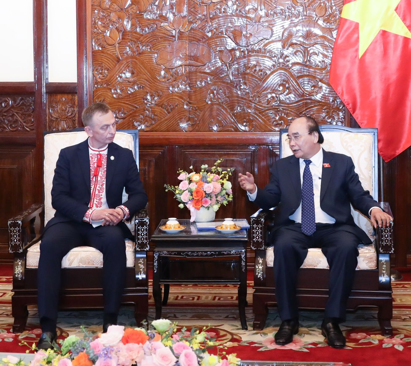 Tiếp Đại sứ Ukraine, Chủ tịch nước Nguyễn Xuân Phúc chúc mừng ông Gaman Oleksandr nhận nhiệm vụ tại Việt Nam.