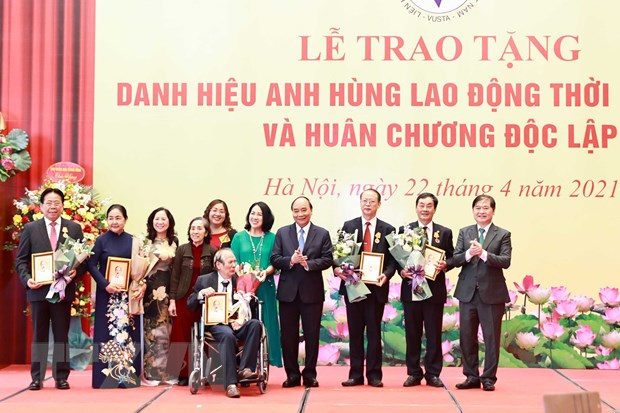 Sáng 22/4, tại Nhà Quốc hội, Chủ tịch nước Nguyễn Xuân Phúc đã trao tặng Danh hiệu Anh hùng Lao động thời kỳ đổi mới cho gia đình cố Giáo sư, Viện sỹ Vũ Tuyên Hoàng, nguyên Bí thư Đảng đoàn, nguyên Chủ tịch Liên hiệp các Hội Khoa học và Kỹ thuật Việt Nam (VUSTA); Giáo sư Hoàng Chương, Viện trưởng Viện Nghiên cứu Bảo tồn và Phát huy văn hóa dân tộc (trực thuộc VUSTA) cùng Huân chương Độc lập cho một số cá nhân nguyên là lãnh đạo của VUSTA.
