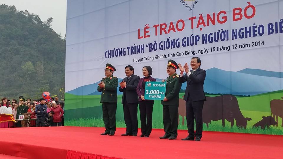Nhân dịp này, hưởng ứng lời kêu gọi của Chủ tịch nước Trương Tấn Sang và xuất phát từ thực tế còn nhiều khó khăn của người dân vùng sâu vùng xa, Tập đoàn Viễn thông Quân đội đã quyết định trao tặng đồng bào các tỉnh biên giới phía Bắc 20.000 tấn xi măng để cải tạo nhà ở, khu vực chăn nuôi nhằm phát huy tốt nhất hiệu quả của Chương trình. Riêng các xã biên giới tỉnh Cao Bằng được nhận 2.000 tấn xi măng.