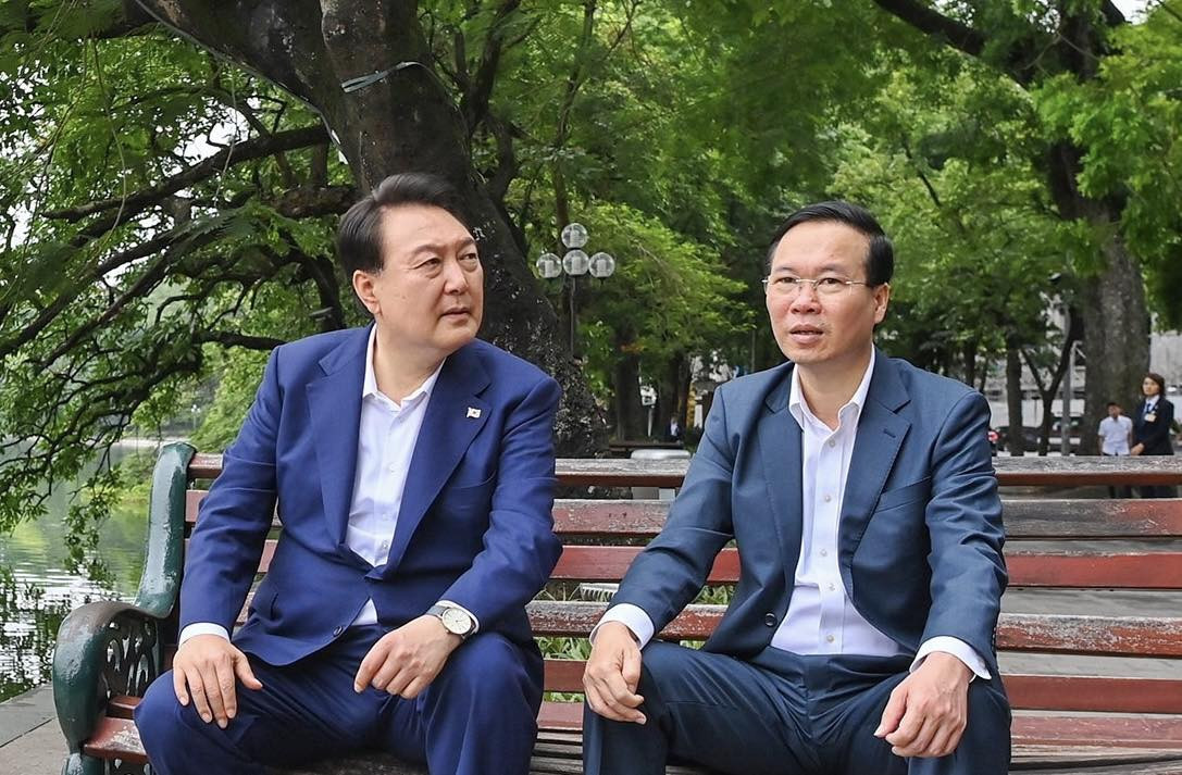 Chủ tịch nước Võ Văn Thưởng và Tổng thống Hàn Quốc Yoon Suk-yeol đều cho rằng, hai nước đã trở thành đối tác quan trọng hàng đầu của nhau, cùng ủng hộ và giúp đỡ lẫn nhau vì sự phát triển chung.