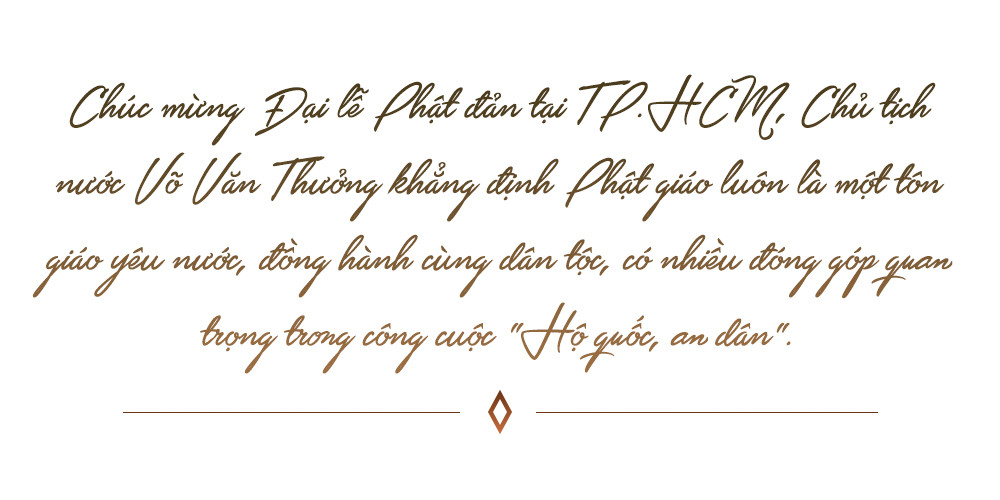 Nhắc lại tiến trình du nhập của Phật giáo vào Việt Nam, Chủ tịch nước nêu rõ, hiện nay Phật giáo gắn kết, lan toả mạnh mẽ trong đời sống xã hội văn hoá của người Việt, có nhiều ảnh hưởng trong đời sống xã hội. Phật giáo Việt Nam đã trở thành tôn giáo yêu nước, tiến bộ, luôn đồng hành cùng dân tộc, có nhiều đóng góp quan trọng trong công cuộc "Hộ quốc, an dân".