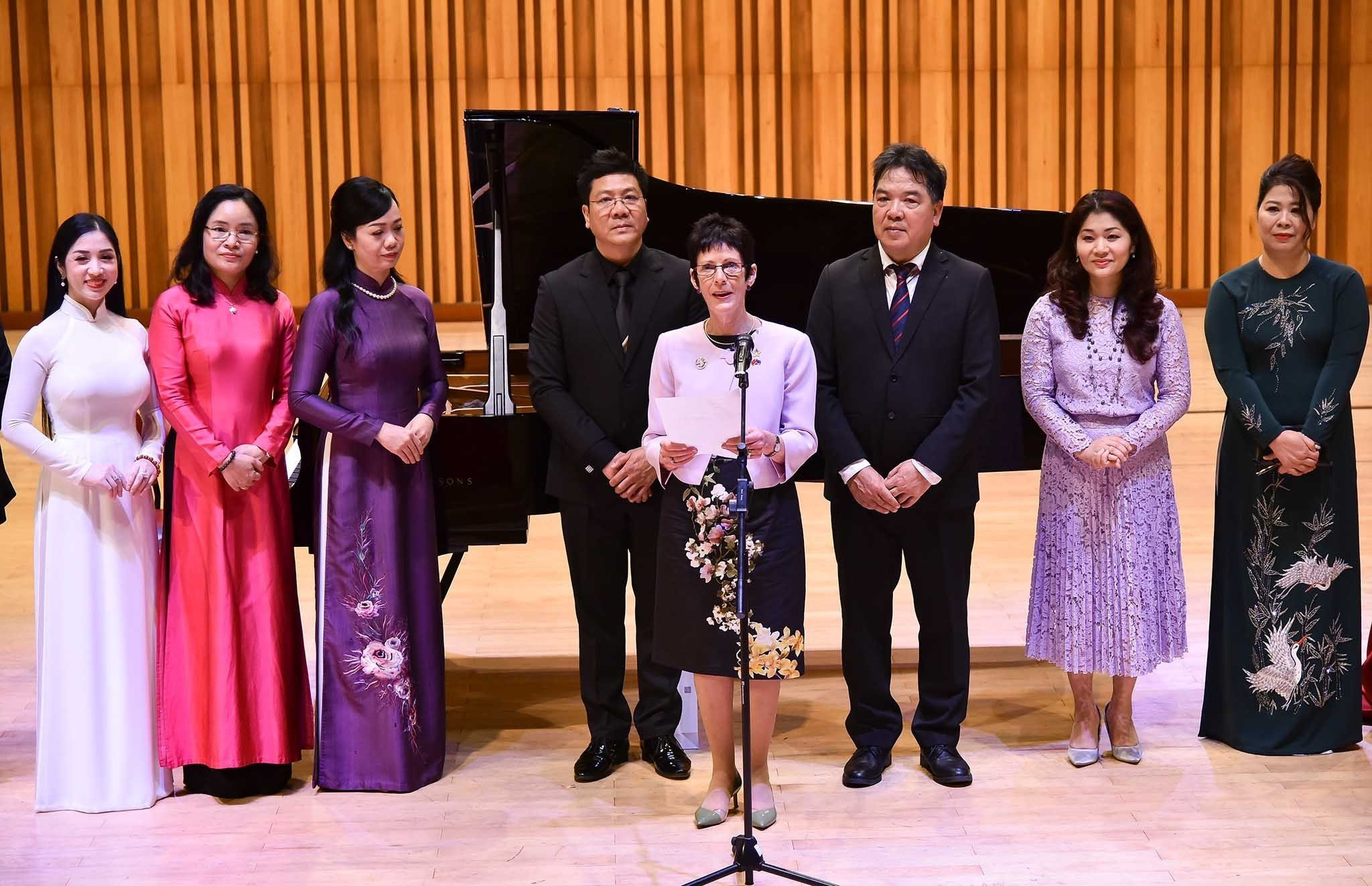 Bà Linda Hurley cảm ơn sự chào đón nhiệt tình của Việt Nam, của phu nhân Chủ tịch nước, bà Phan Thị Thanh Tâm cũng như Ban Giám đốc, các nghệ sĩ và sinh viên Học viện Âm nhạc Quốc gia Việt Nam.