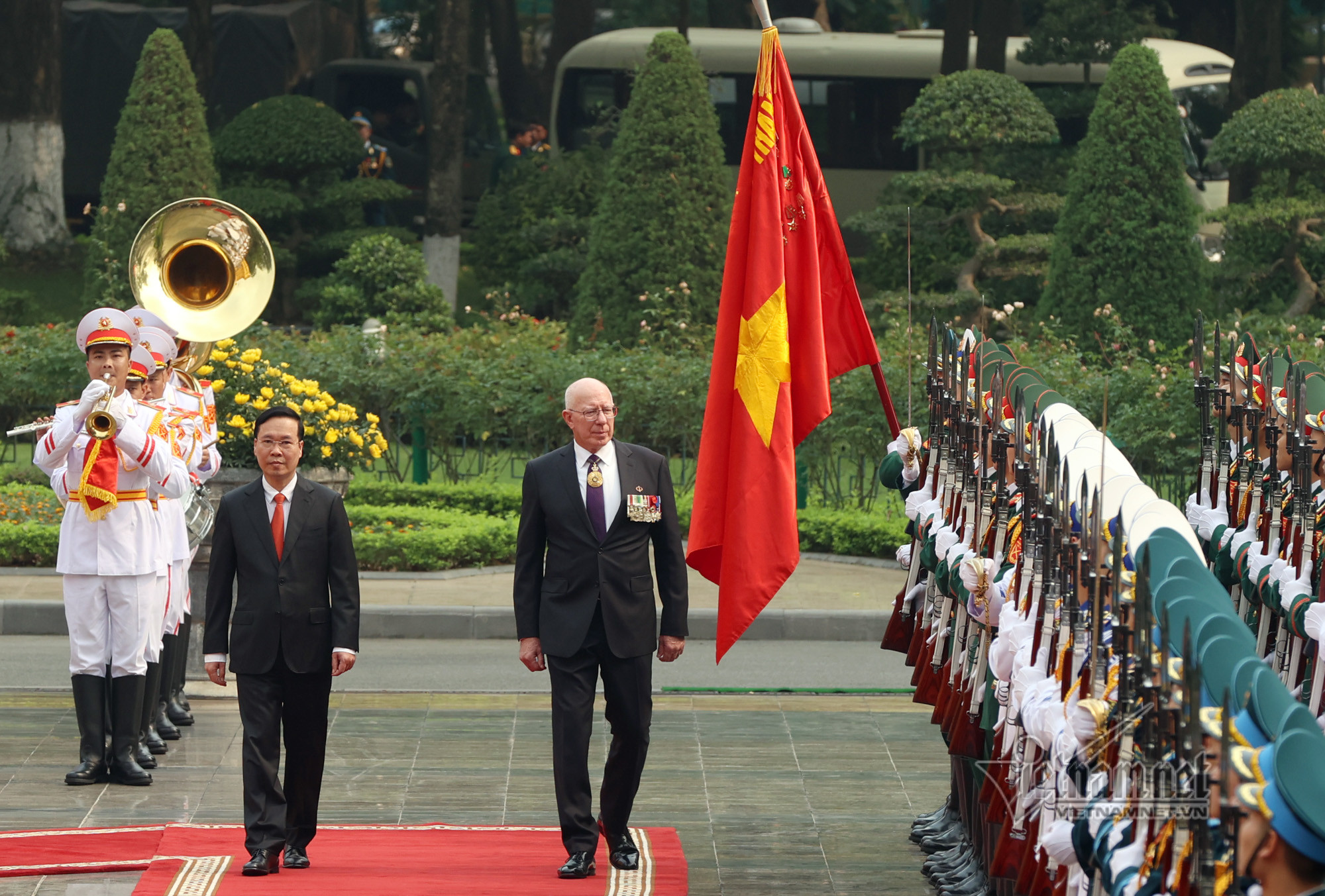 Chủ tịch nước Võ Văn Thưởng mời Toàn quyền Australia duyệt đội danh dự Quân đội Nhân dân Việt Nam.