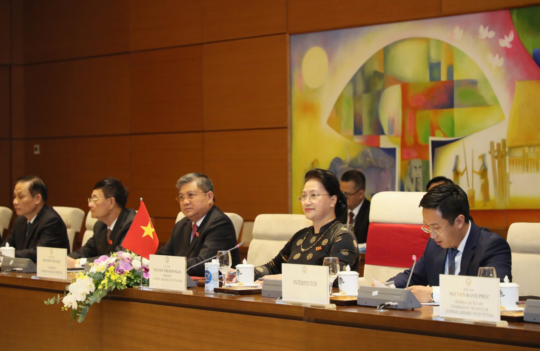 Về hợp tác an ninh, quốc phòng, Chủ tịch QH Nguyễn Thị Kim Ngân cho biết, QH Việt Nam ủng hộ hai Chính phủ hợp tác trong lĩnh vực này, phù hợp với nhu cầu và lợi ích hai bên.