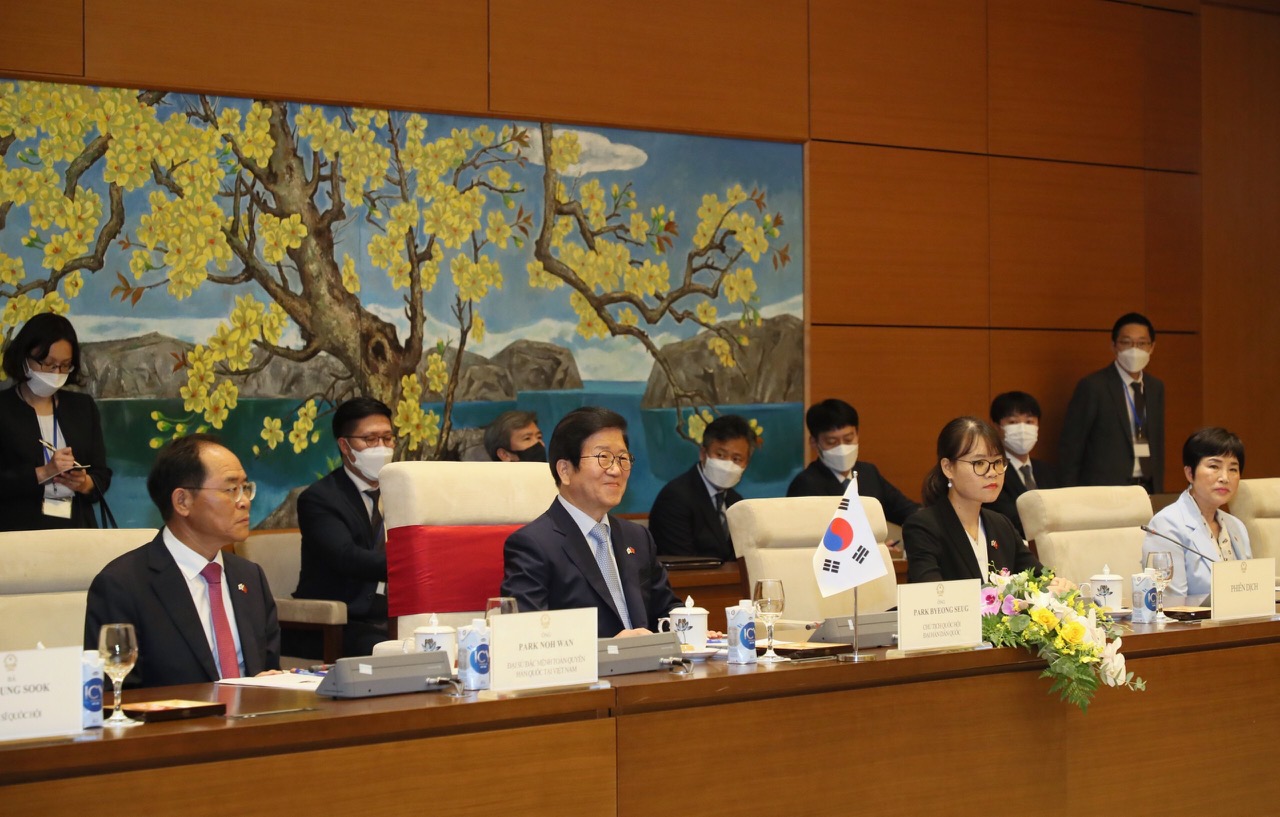Chủ tịch QH Hàn Quốc cho biết, vào năm 2022 hai nước kỷ niệm 30 năm thiết lập quan hệ ngoại giao. Hàn Quốc cho rằng đây là thời điểm cần nâng cấp quan hệ hợp tác hai nước. Việt Nam không chỉ là đối tác trọng tâm trong chính sách hướng Nam mới, Việt Nam còn đóng vai trò hết sức quan trọng trong khối ASEAN.