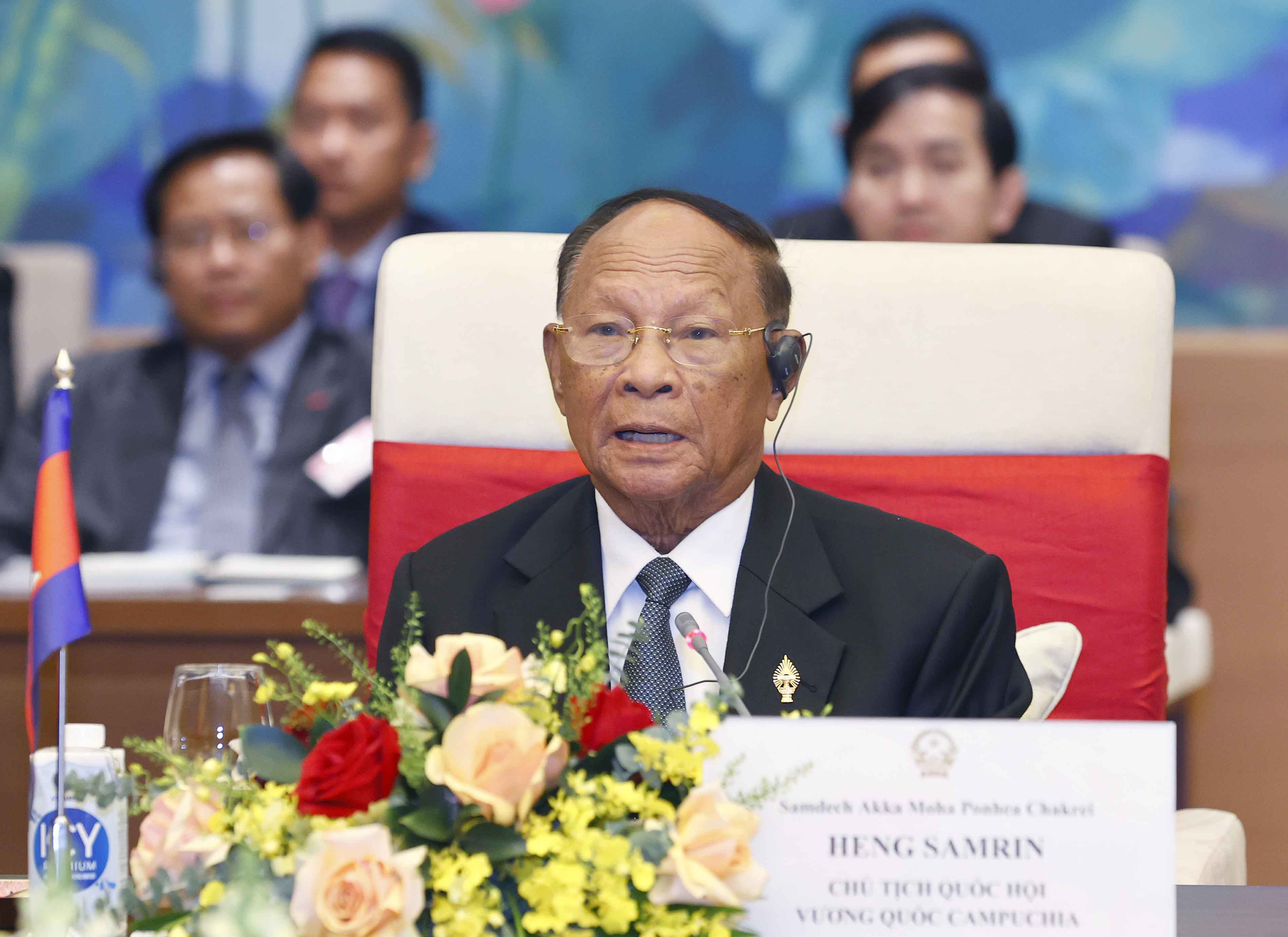 Nhận lời mời của Chủ tịch Quốc hội Vương Đình Huệ, sáng 12/9, Chủ tịch Quốc hội Vương quốc Campuchia Samdech Heng Samrin đã dẫn đầu đoàn đại biểu cấp cao Quốc hội Campuchia đến thủ đô Hà Nội, bắt đầu chuyến thăm chính thức Việt Nam từ ngày 12-14/9.