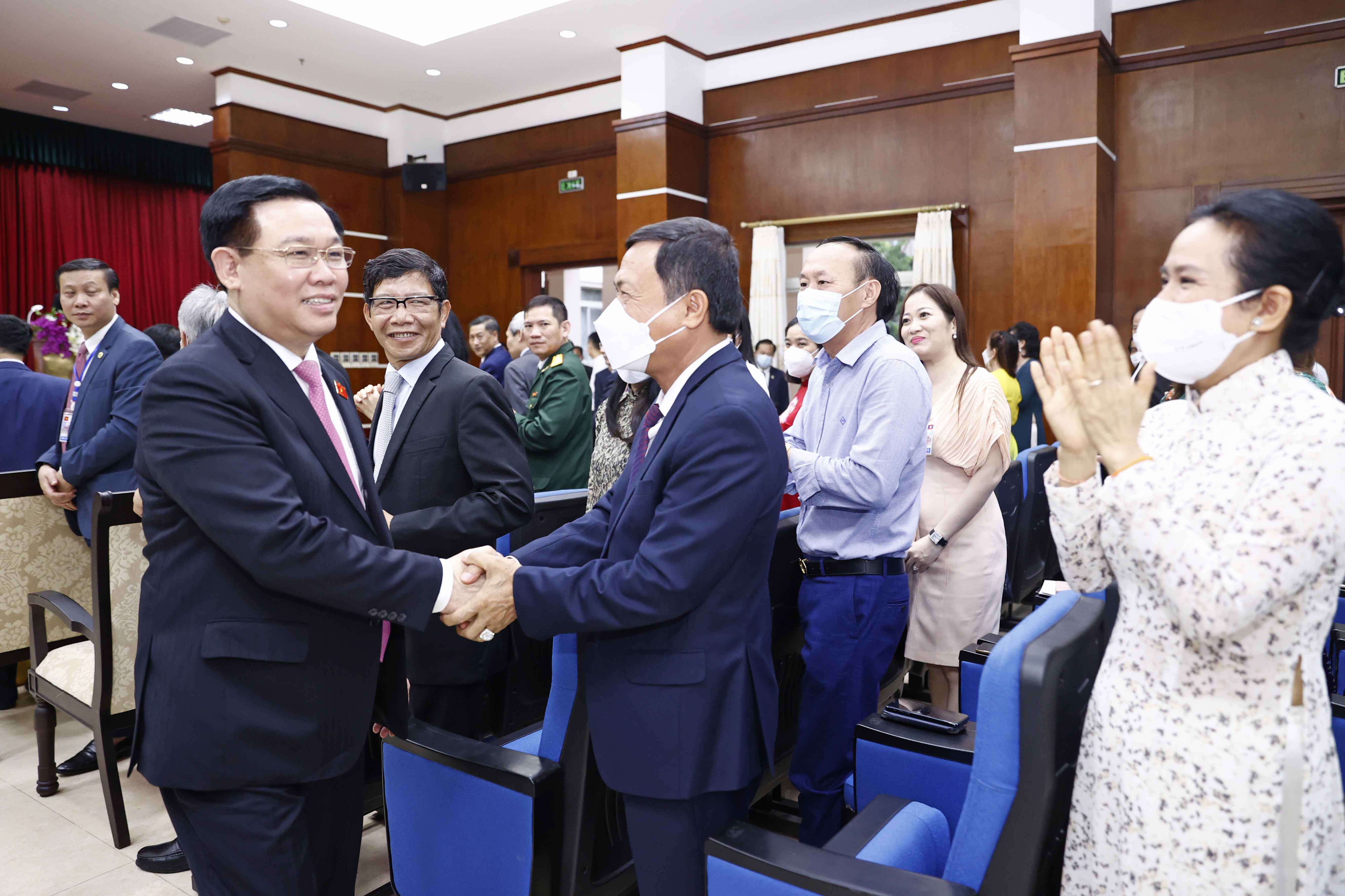 Chiều 15/5, Chủ tịch Quốc hội Vương Đình Huệ đã tới thăm cán bộ, nhân viên Đại sứ quán Việt Nam và gặp gỡ cộng đồng người Việt Nam tại Lào.
