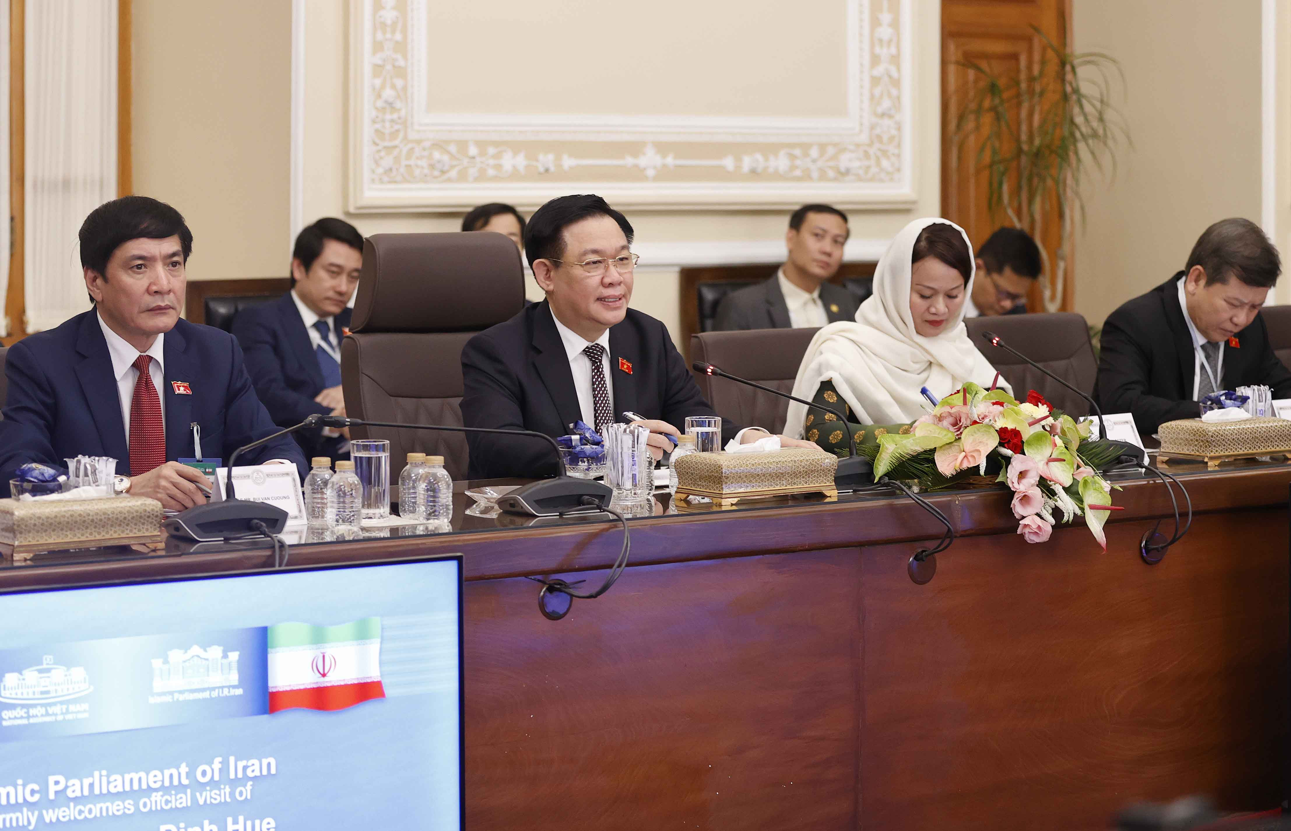 Tại hội đàm, hai lãnh đạo đã trao đổi và nhất trí các biện pháp để nâng cao hiệu quả hợp tác song phương trên các lĩnh vực. Trong đó, tăng cường trao đổi đoàn các cấp, đẩy mạnh giao lưu nhân dân, văn hóa, nghệ thuật; tăng cường hợp tác giữa các ủy ban, cơ quan của Quốc hội, Hội nghị sĩ hữu nghị hai bên. Hai nước tiếp tục phối hợp và ủng hộ lẫn nhau tại diễn đàn quốc tế, chuẩn bị tốt cho Kỳ họp lần 10 Ủy ban liên Chính phủ Việt Nam - Iran tại Hà Nội.