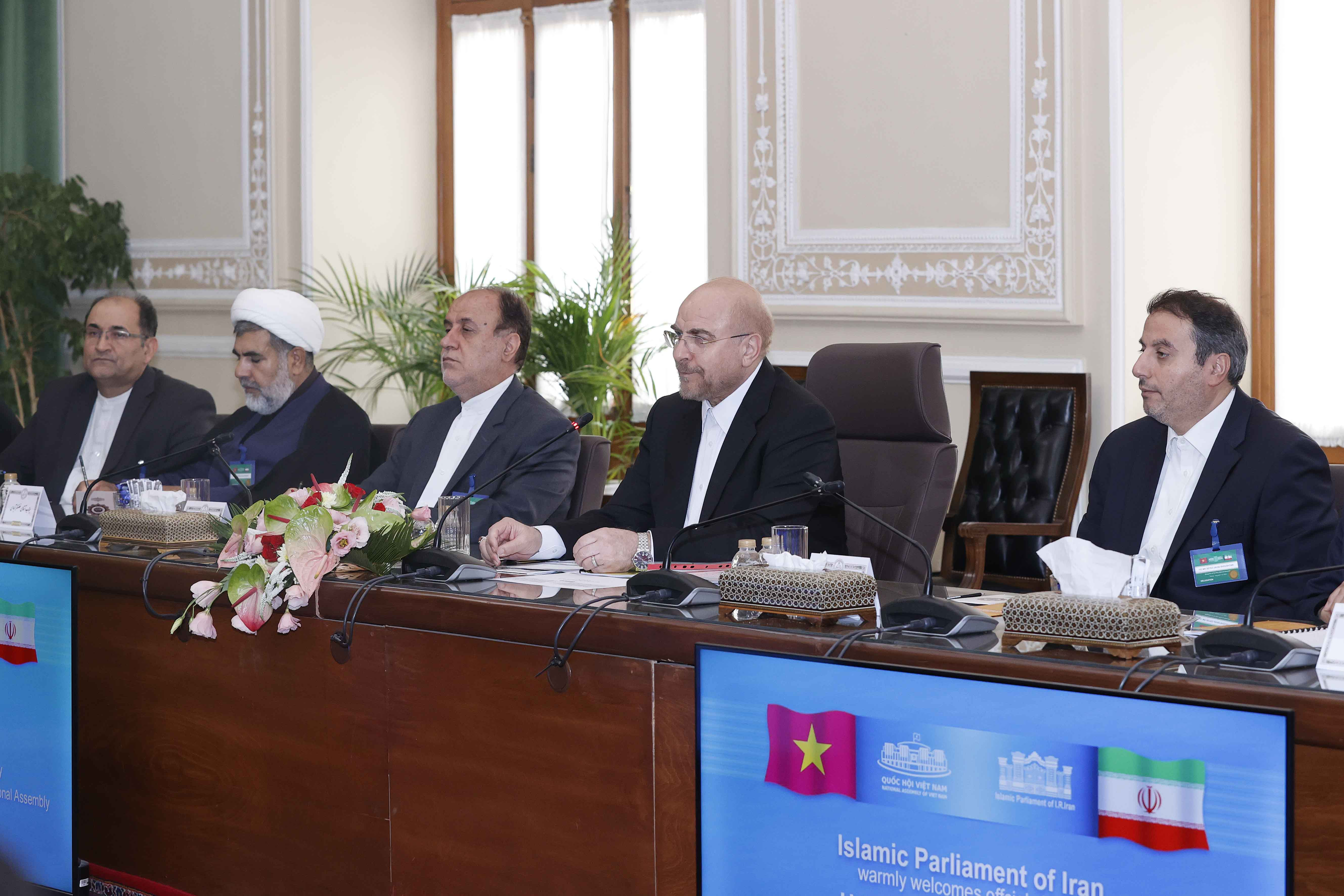Chủ tịch Quốc hội Vương Đình Huệ trân trọng mời Chủ tịch Quốc hội Iran sớm thăm chính thức Việt Nam. Chủ tịch Quốc hội Mohammad Bagher Ghalibaf vui vẻ nhận lời và đề nghị cơ quan chức năng của hai bên sớm thu xếp.