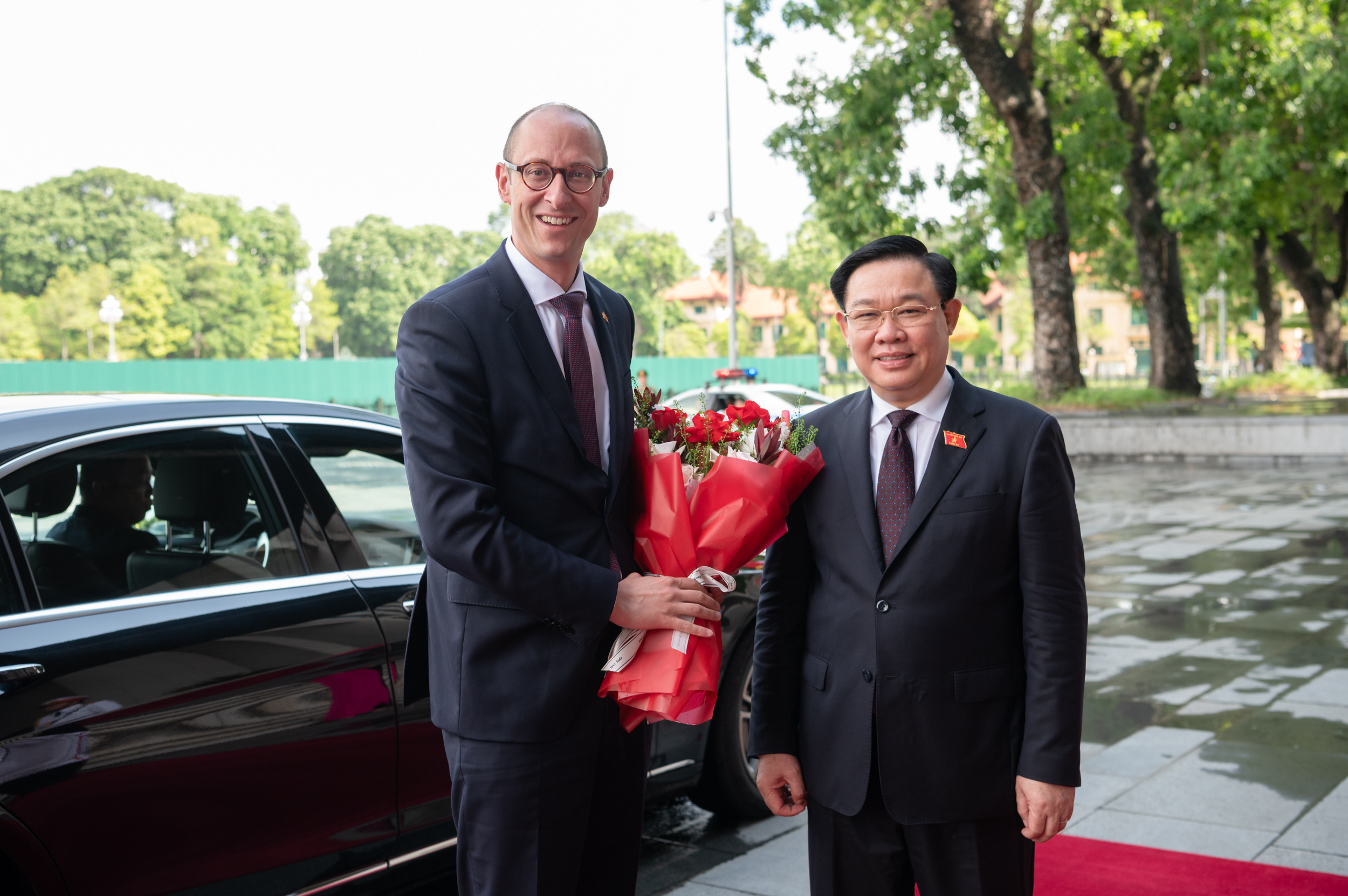 Về lập pháp, Chủ tịch Quốc hội mong muốn hai bên tiếp tục trao đổi đoàn, giữa các Ủy ban chuyên môn và giữa các nghị sĩ. Tăng cường hợp tác chia sẻ kinh nghiệm lập pháp, kiến tạo thể chế phát triển, đáp ứng yêu cầu mang tính toàn cầu như chuyển đổi năng lượng công bằng, chuyển đổi số, thích ứng với biến đổi khí hậu.