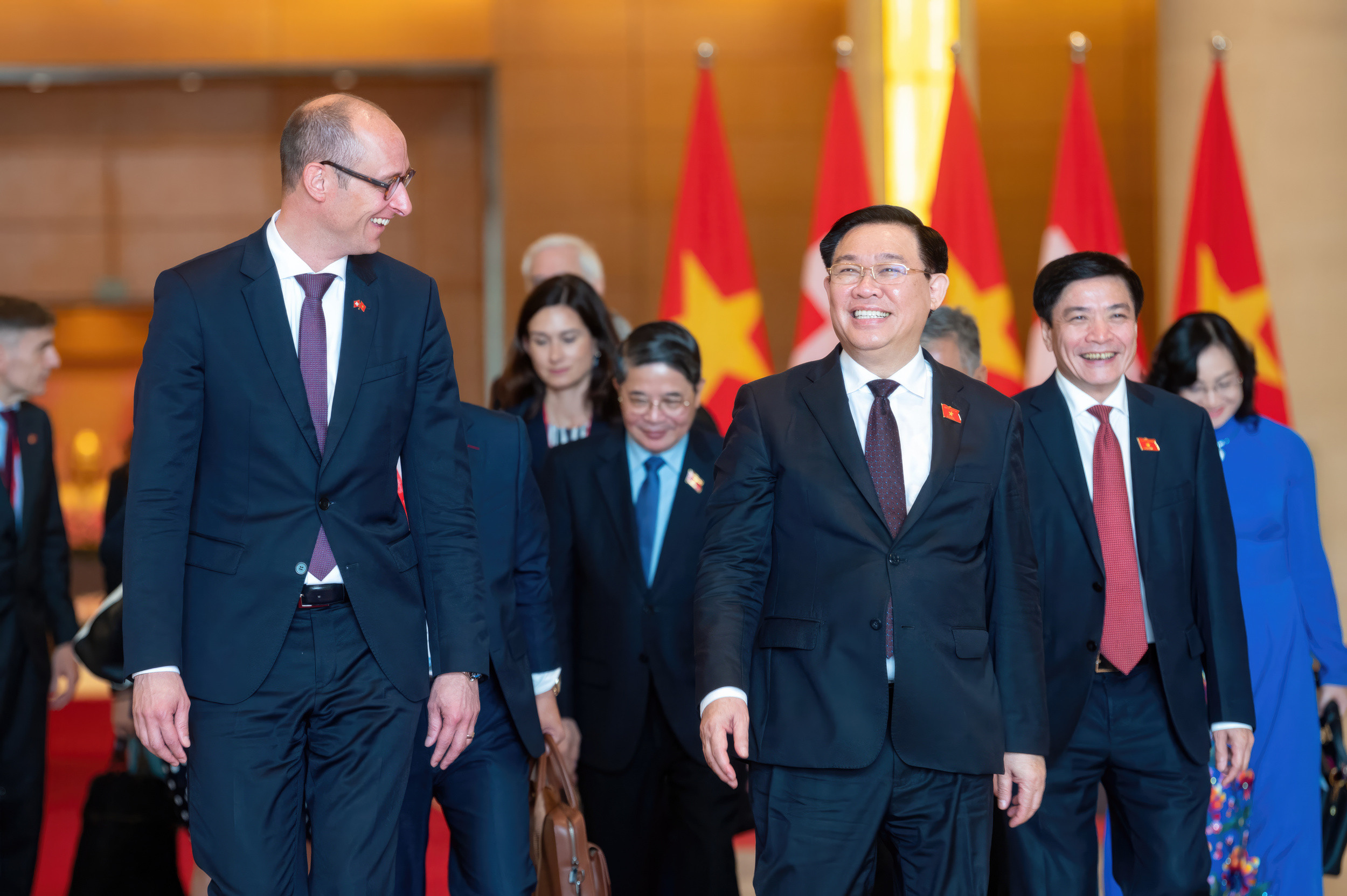 Chủ tịch Quốc hội Vương Đình Huệ bày tỏ mong muốn, Chủ tịch Hạ viện Thụy Sĩ cùng đoàn sẽ như trở về nhà, trải nghiệm, tìm hiểu nhiều hơn về đất nước, con người Việt Nam.