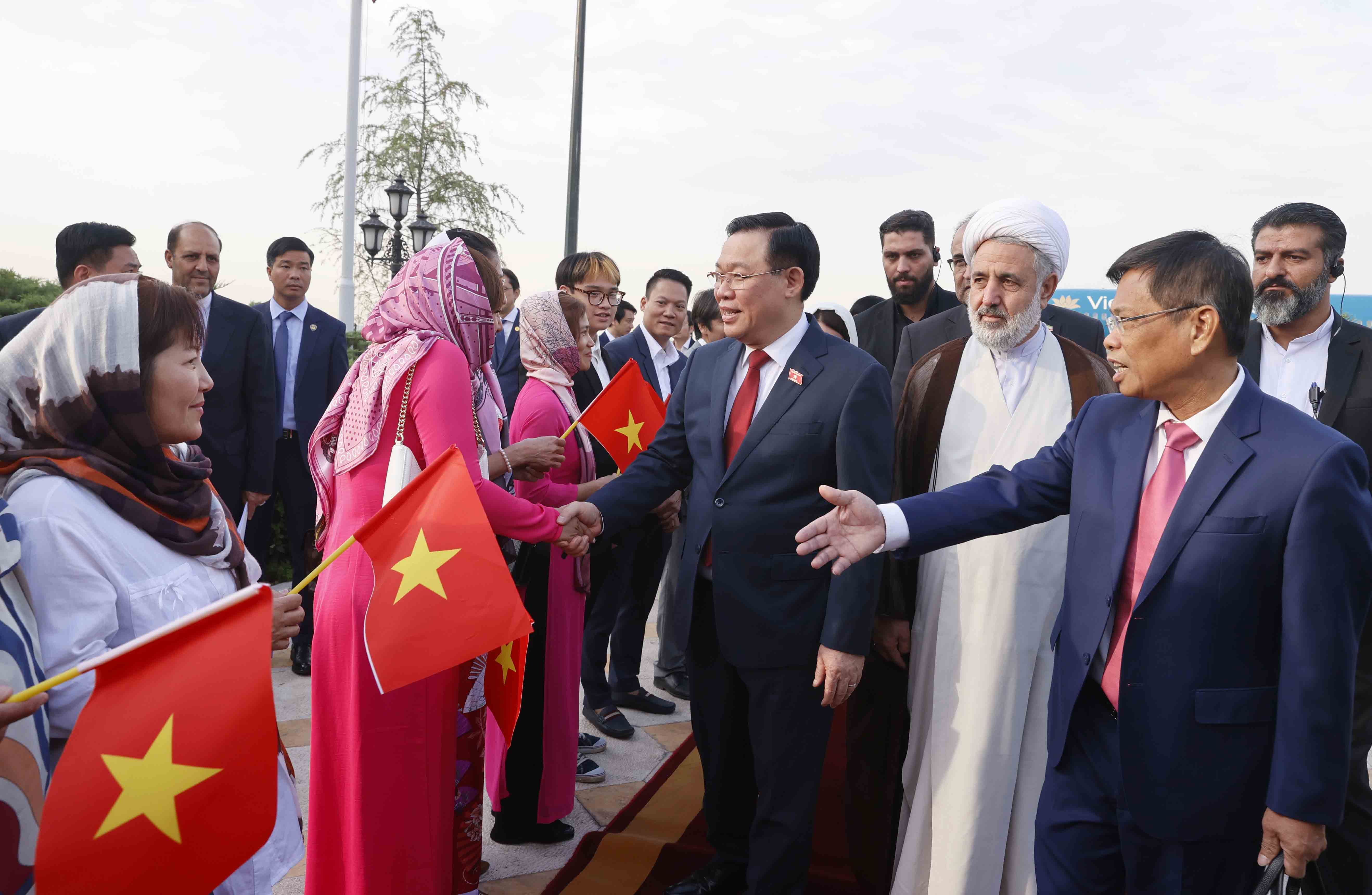 Sáng 8/8, đón Chủ tịch Quốc hội Vương Đình Huệ và đoàn đại biểu cấp cao Quốc hội Việt Nam tại sân bay có Phó Chủ tịch Quốc hội Iran Mojtaba Zolnoori, Đại sứ Việt Nam tại Iran Lương Quốc Huy cùng đại diện cộng đồng người Việt.