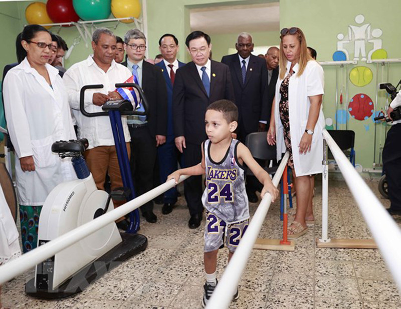 Chủ tịch Quốc hội Vương Đình Huệ và Chủ tịch Quốc hội Cuba Esteban Lazo Hernández đã đến thăm Trường đặc biệt hữu nghị Cuba - Việt Nam, ngôi trường dành cho trẻ em khiếm khuyết tại 5 tỉnh miền Đông Cuba.