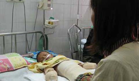 Một cháu bé 10 tuổi ở Lạng Sơn, sau khi bị bỏng vì ngã vào bếp than, nhiều người