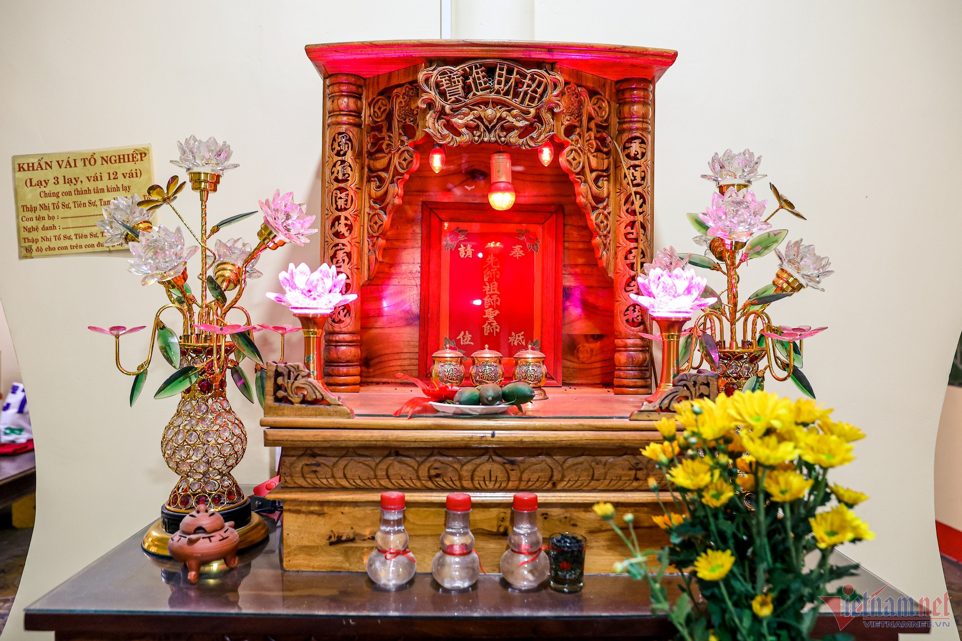 Phòng thờ Tổ sau khi được sửa sang. Bàn thờ Tổ nghiệp được sắp xếp chỉn chu, là nơi các nghệ sĩ đến thắp hương đầu tiên khi ghé thăm chùa.