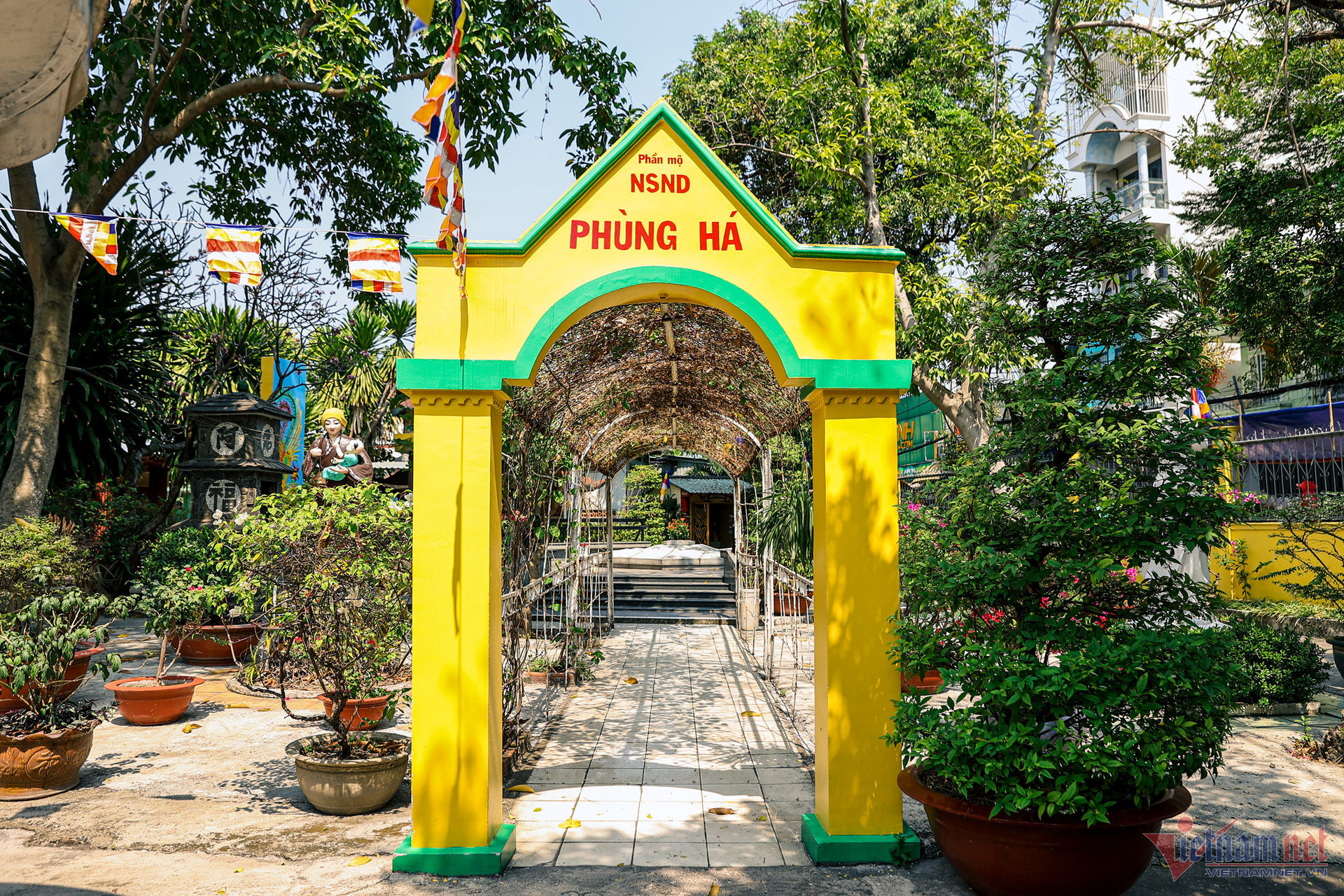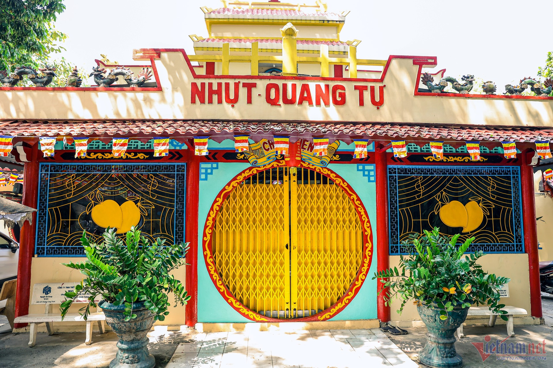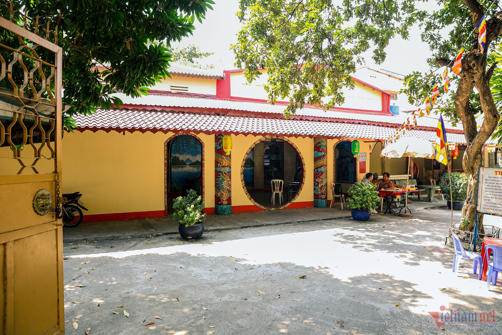 Trước thềm Tết Giáp Thìn 2024, phóng viên VietNamNet đến thăm Chùa Nghệ sĩ - một trong những di sản văn hóa của TP.HCM. Từ bên ngoài, ngôi chùa nổi bật với sắc vàng, đỏ rực rỡ.