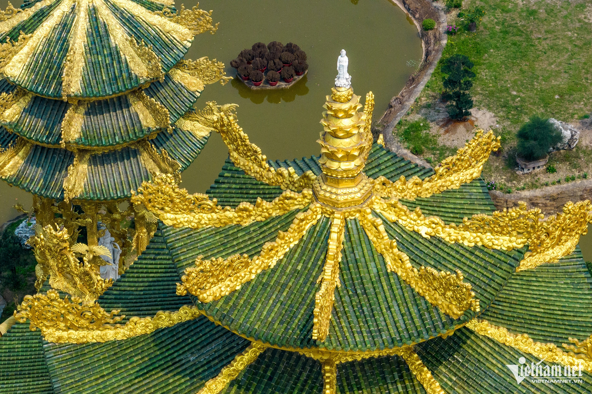 Các tòa tháp nằm ở 4 góc của chùa, mỗi tháp có 6 cột. Những cột này có hình phượng được đắp nổi và uốn lượn, tạo nên vẻ đẹp ấn tượng.