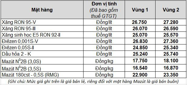 Tính đến thời điểm hiện tại, giá dầu diesel 0,001S-V có giá cao nhất trong số các mặt hàng xăng dầu ở Việt Nam, đắt hơn cả loại xăng cao cấp nhất hiện nay là RON 95-V. RON95-V là loại xăng đạt tiêu chuẩn khí thải Euro 5 trở lên (giá bán 26.750 đồng/lít với vùng 1 và 27.280 đồng/lít với vùng 2) và được kinh doanh từ 1/1/2022.