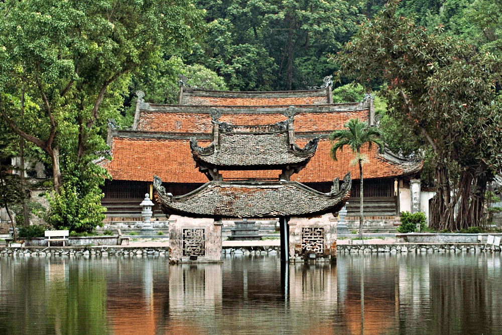 Chánh điện được xây dựng theo hình chữ nhật, mặt chính quay về hướng Đông. Hướng vào chánh điện với 18 bậc thang để đi lên, phía trên là bức phù điêu đắp nổi hình Phật Thích Ca.
