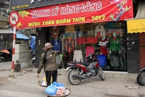 - Những tấm biển khuyến mại từ 10 đến 70%, khuyến mại gây sốc, thanh lý, dọn kho hàng cuối năm tràn ngập phố phường Hà Nội ngày cận Tết.
