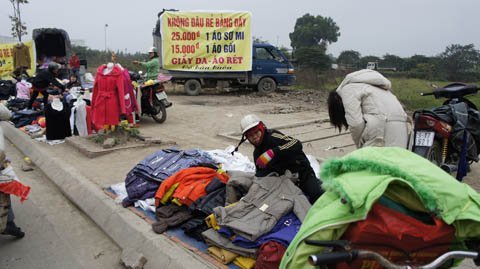 Hàng khuyến mại, giảm giá phổ biến nhất là quần áo, giầy dép, đến cả két bạc và dịch vụ Karaoke…Tất cả đều tràn ra vỉa hè phục vụ thượng đế ngày cuối năm.