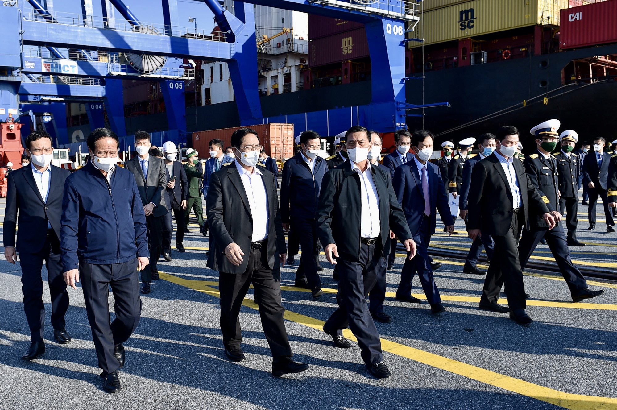 Thủ tướng thị sát cảng container quốc tế Lạch Huyện. Ảnh: VGP/Nhật Bắc