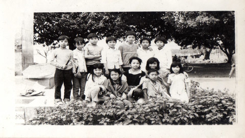 | Chí Anh ngoài cùng bên trái hàng các bạn đứng. |