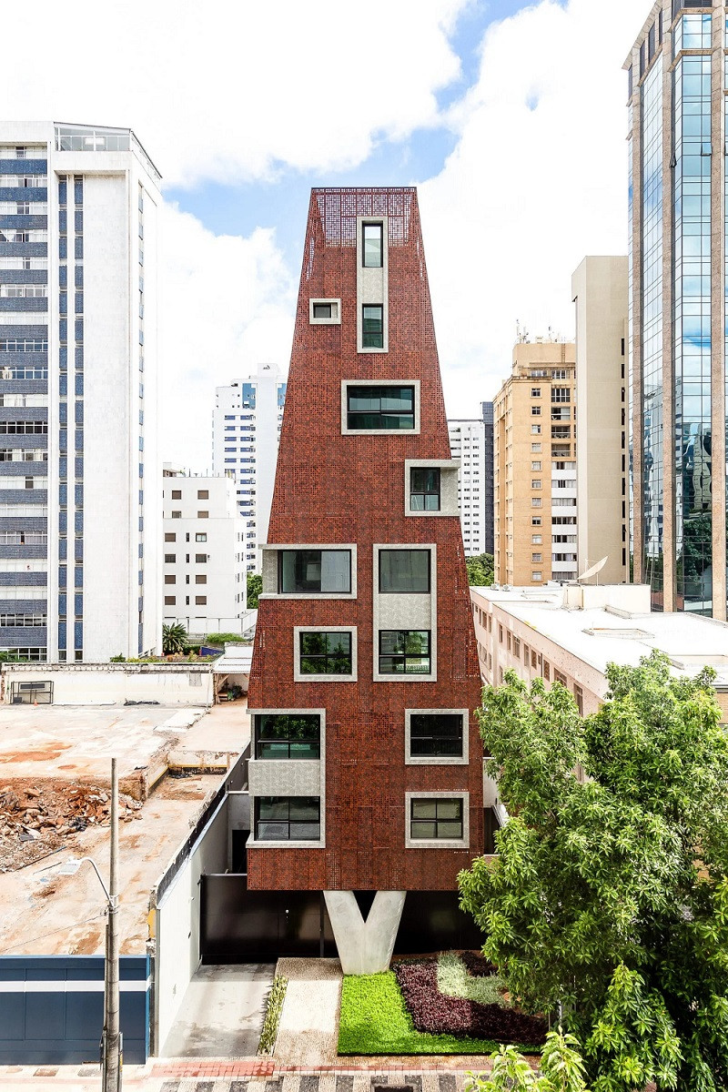 Tòa nhà nằm trên một khu đất hẹp chỉ 12,7m với 9 tầng và 38 căn hộ, trong đó có 24 căn studio cùng ba tầng hầm để xe.