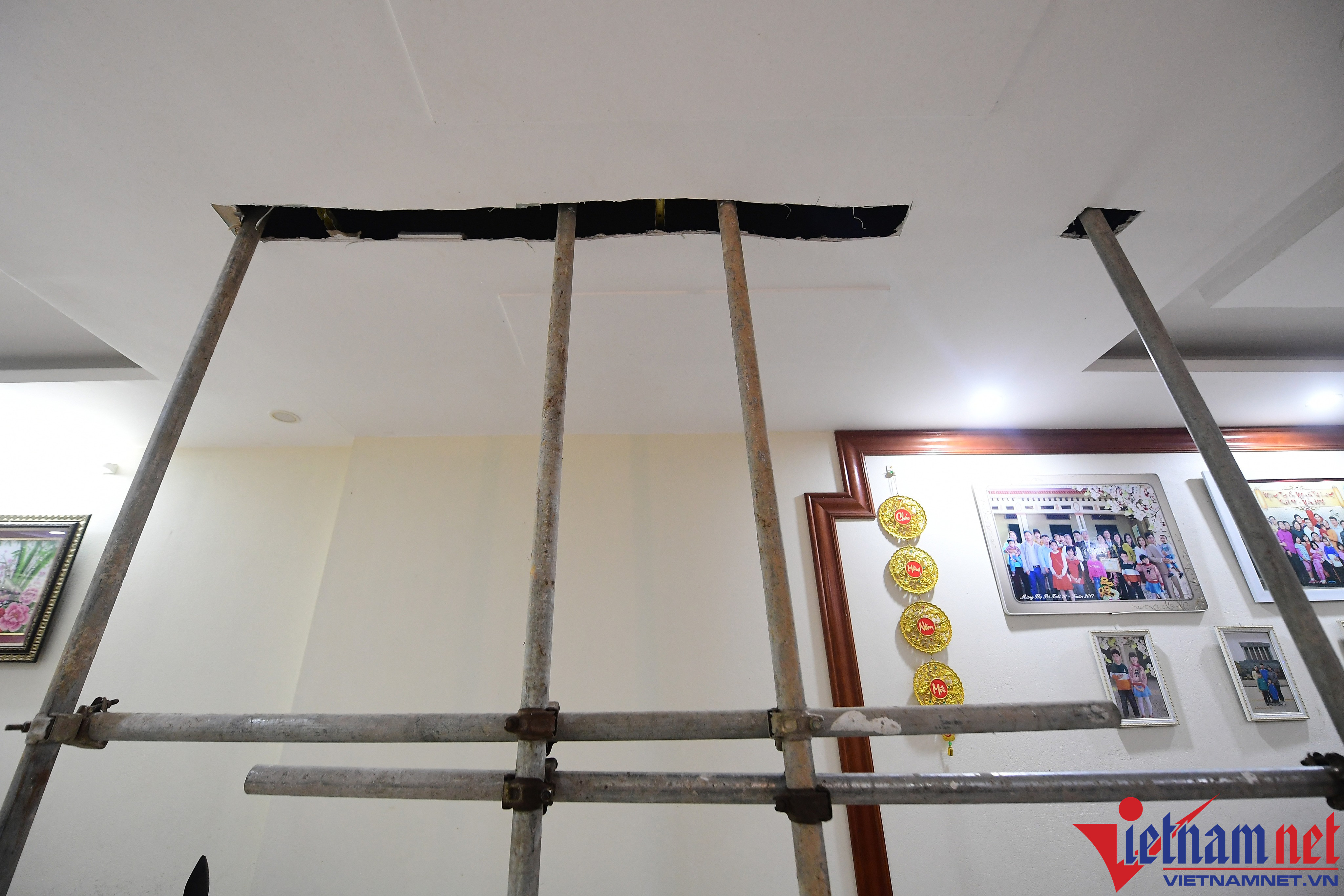 Mấy ngày sau, bà Nguyên và nhiều hộ phát hiện nhà bị rạn nứt nghiêm trọng nên báo chính quyền, yêu cầu bên phía chung cư CT4 tạm dừng thi công để đảm bảo an toàn cho người dân.