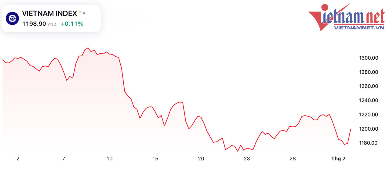 Kết thúc tuần giao dịch từ 27/6-1/7, VN-Index tăng 13,42 điểm (1,13%) lên 1.198,9 điểm, HNX-Index tăng 2,95 điểm (1,07%) lên 278,88 điểm, UPCoM-Index tăng 1,08 điểm (1,24%) lên 88,18 điểm.