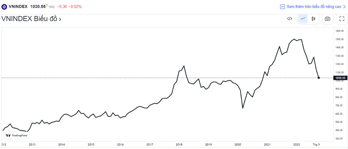 Trong năm 2022, VN-Index ghi nhận đỉnh cao hơn 1.520 điểm vào đầu tháng 4 và hiện mất khoảng 500 điểm.