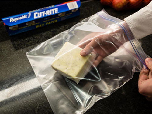 Đặt pho mát vào túi bóng kín có thể thúc đẩy sự phát triển của vi khuẩn gây hại. Vì vậy, cách tốt hơn để cất trữ pho mát là gói chúng vào giấy nến rồi mới cho vào trong tủ lạnh. Nếu sợ pho mát bị khô, bạn có thể đặt pho mát được bọc giấy nến vào túi bóng nhưng không đóng kín.