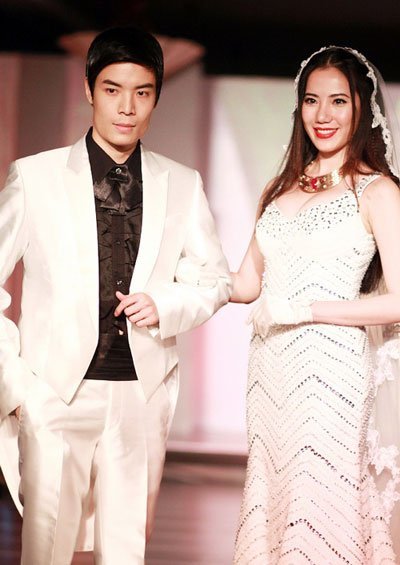 | Phillip Le làm mọi người hết sức bất ngờ khi sánh bước trên sàn diễn thời trang cùng Chung Thục Quyên (Ảnh: Bưu điện Việt Nam) |