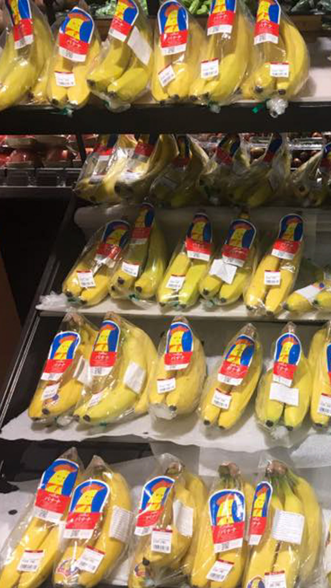 Sản phẩm chuối chín vàng cũng được bày bán tại nhiều TTTM trong nước.