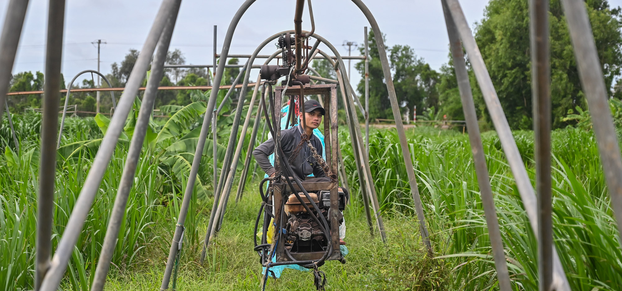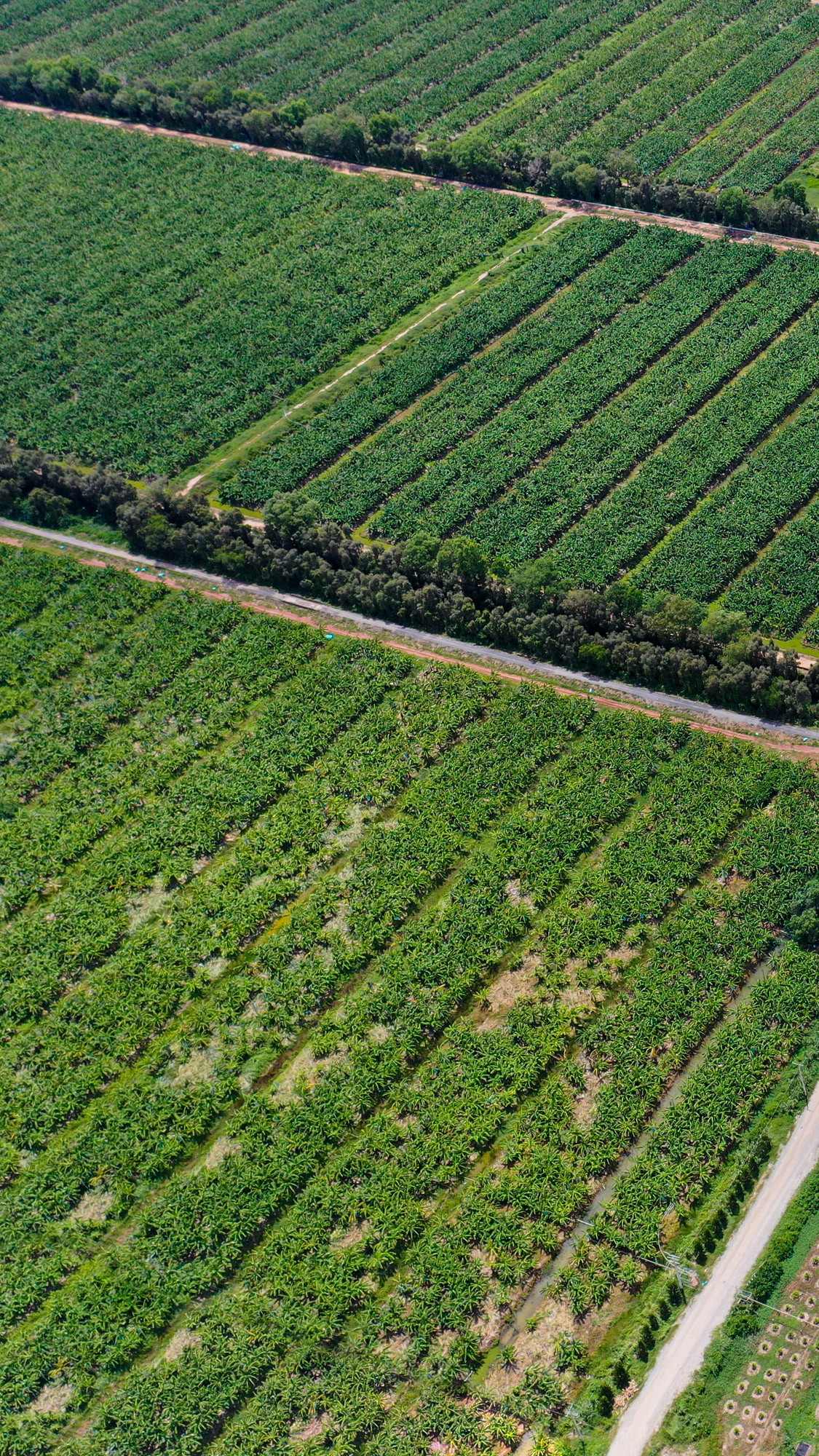 Trang trại chuối rộng 200 ha của ông Út Huy, huyện Đức Huệ (tỉnh Long An) có hệ thống tưới nước tự động với đường ống dài 50 km.