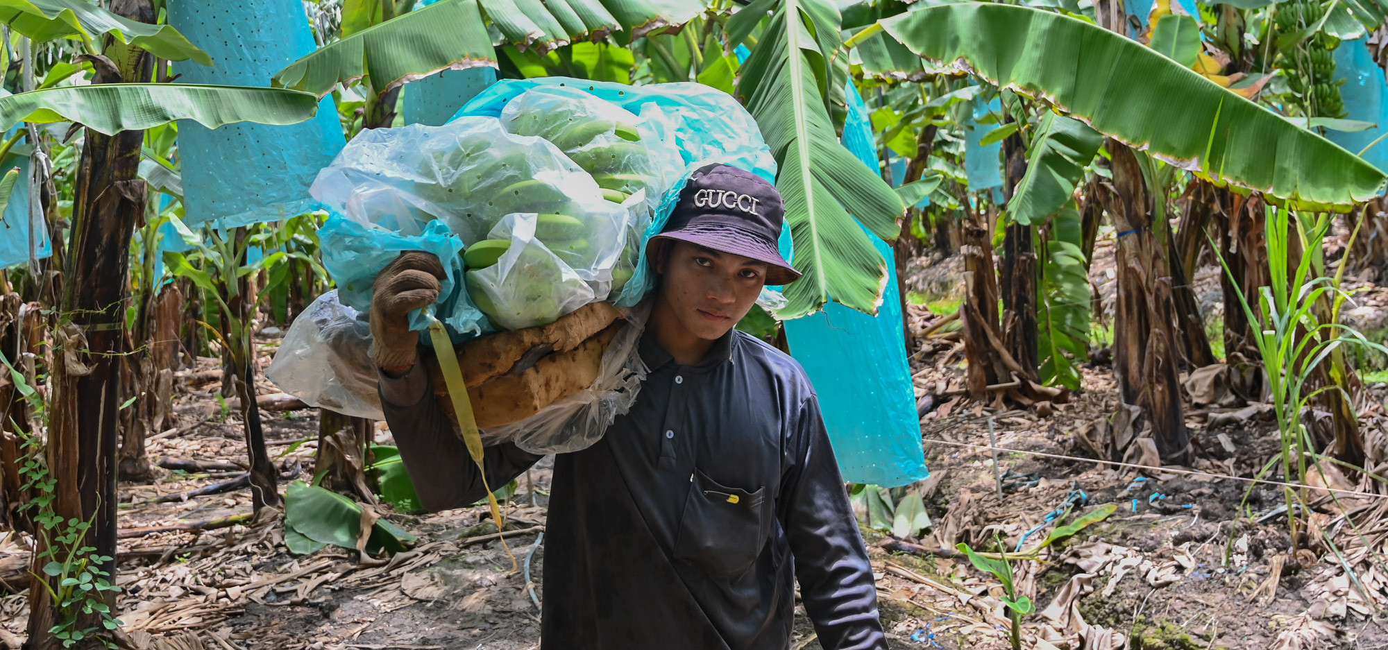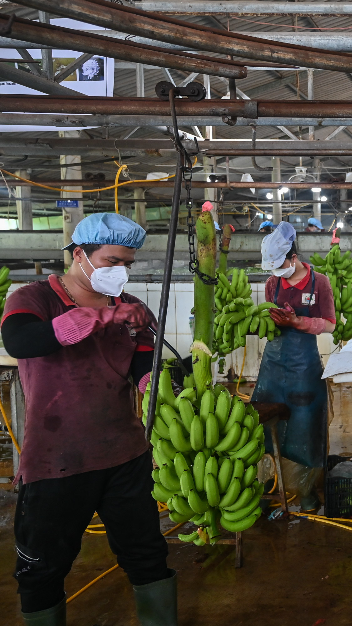 Chuối tại đây có nguồn gốc Nam Mỹ với quy trình sản xuất khép kín từ khâu chọn giống, chăm sóc cho đến thu hoạch, đóng gói và có kho bảo quản riêng.