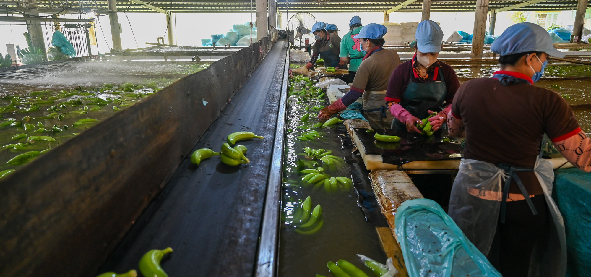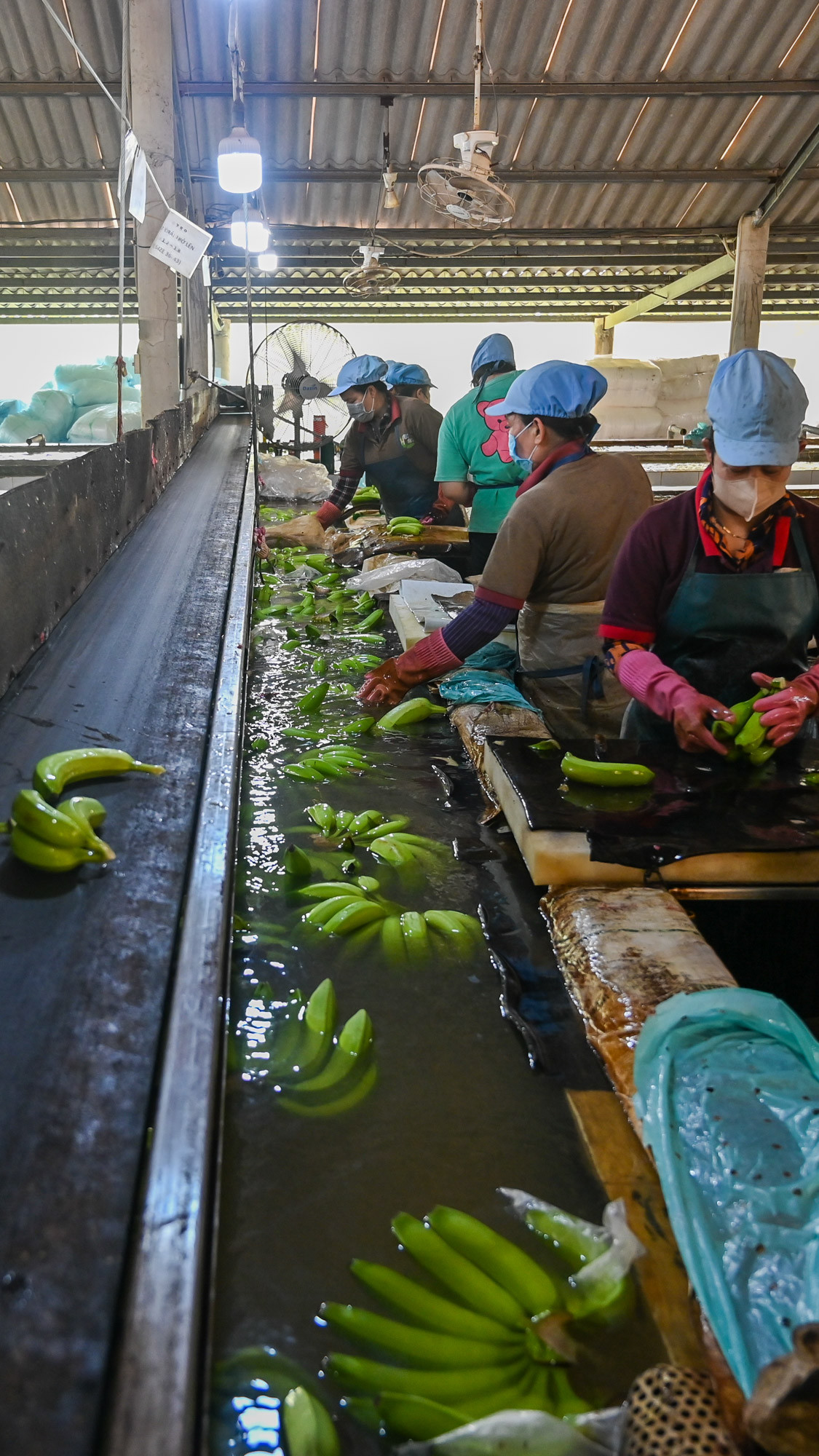 Để đảm bảo chất lượng cao, những quả chuối có dấu hiệu xước, vỏ xấu, không đồng đều sẽ bị lọc ra trong quá trình sơ loại.